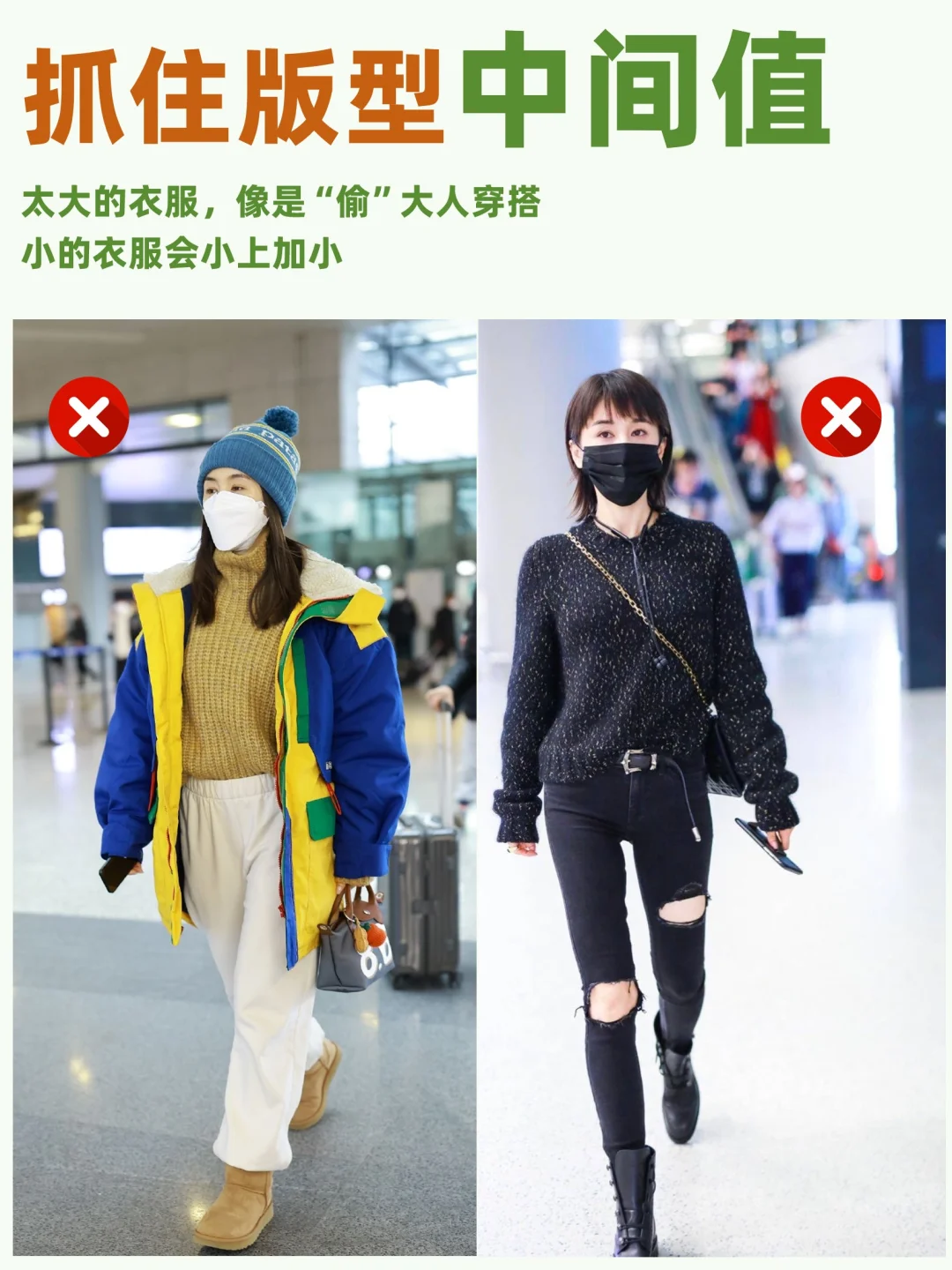 3️⃣版型上把握好量感:太大❌的衣服会有“偷”大人衣服的错觉,太小❌的衣服会压缩身材比例,看起来小上加小(参考图10);