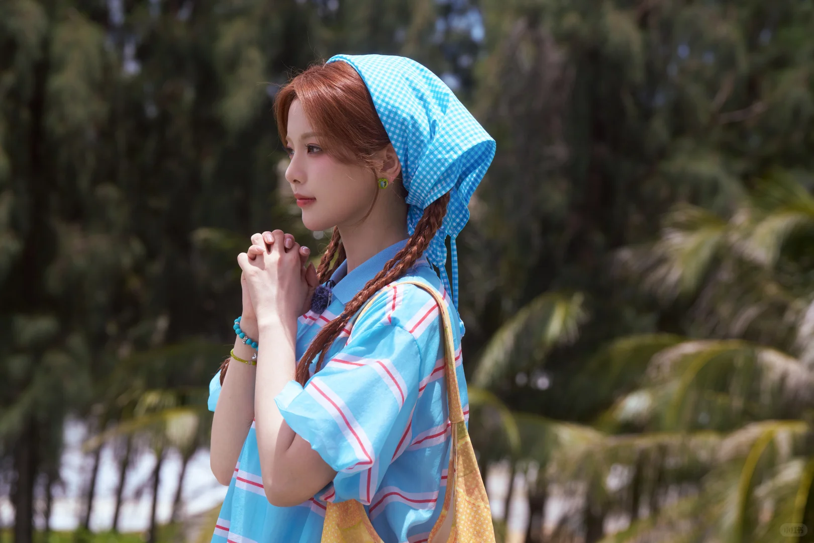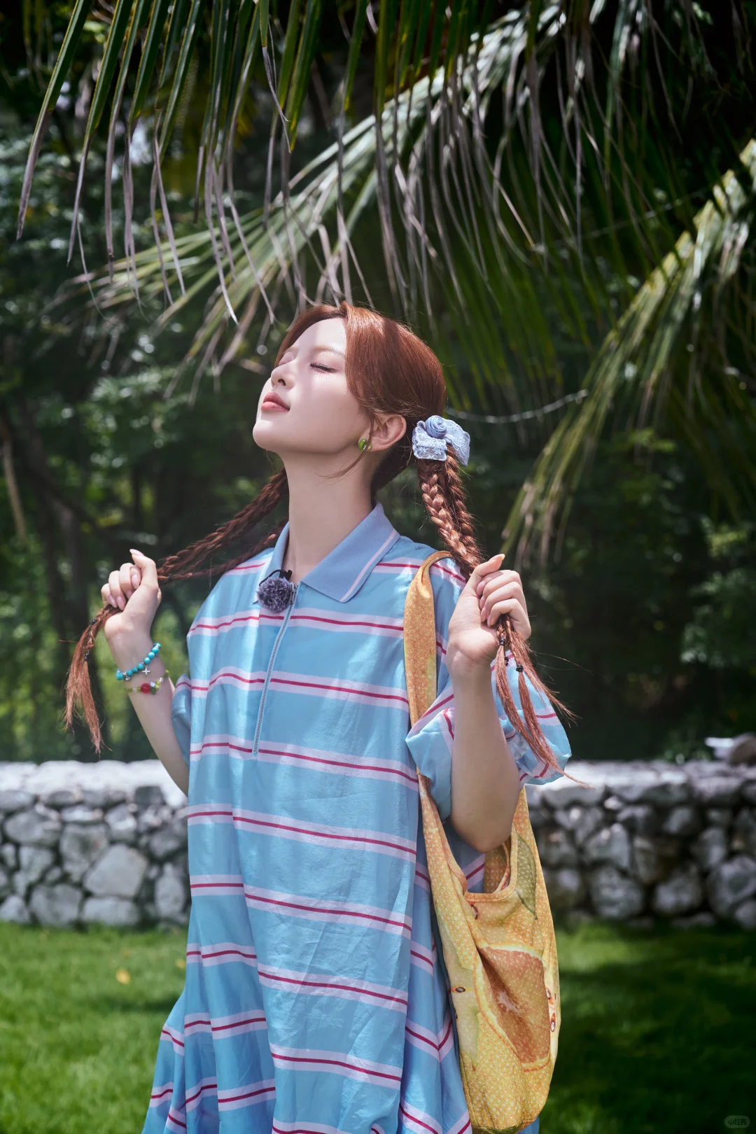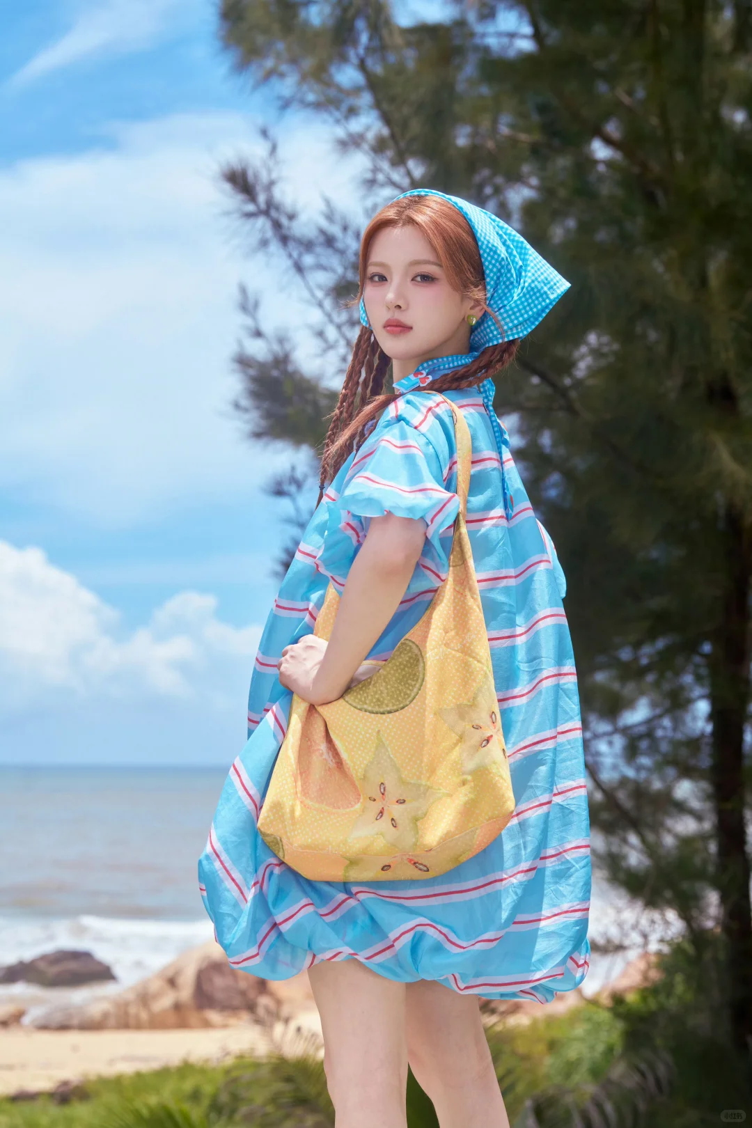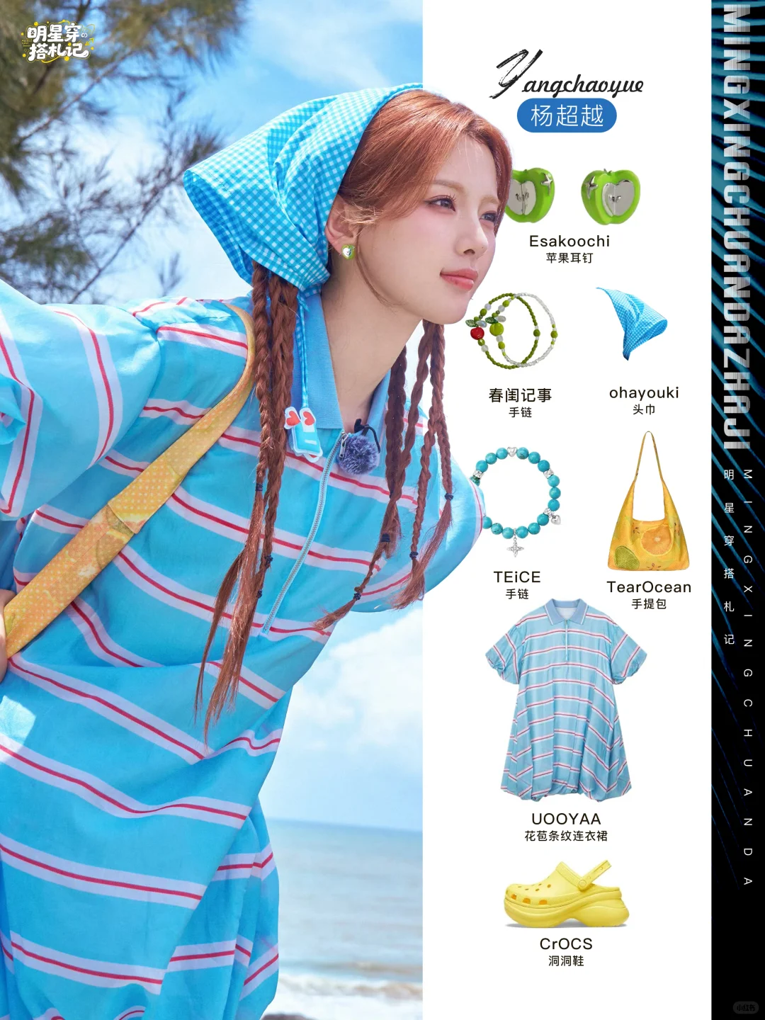 杨超越海边度假风穿搭🌊,这蓝调有点绝