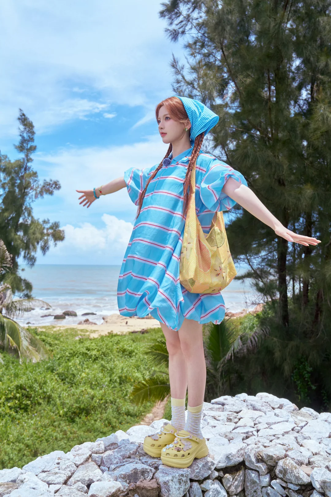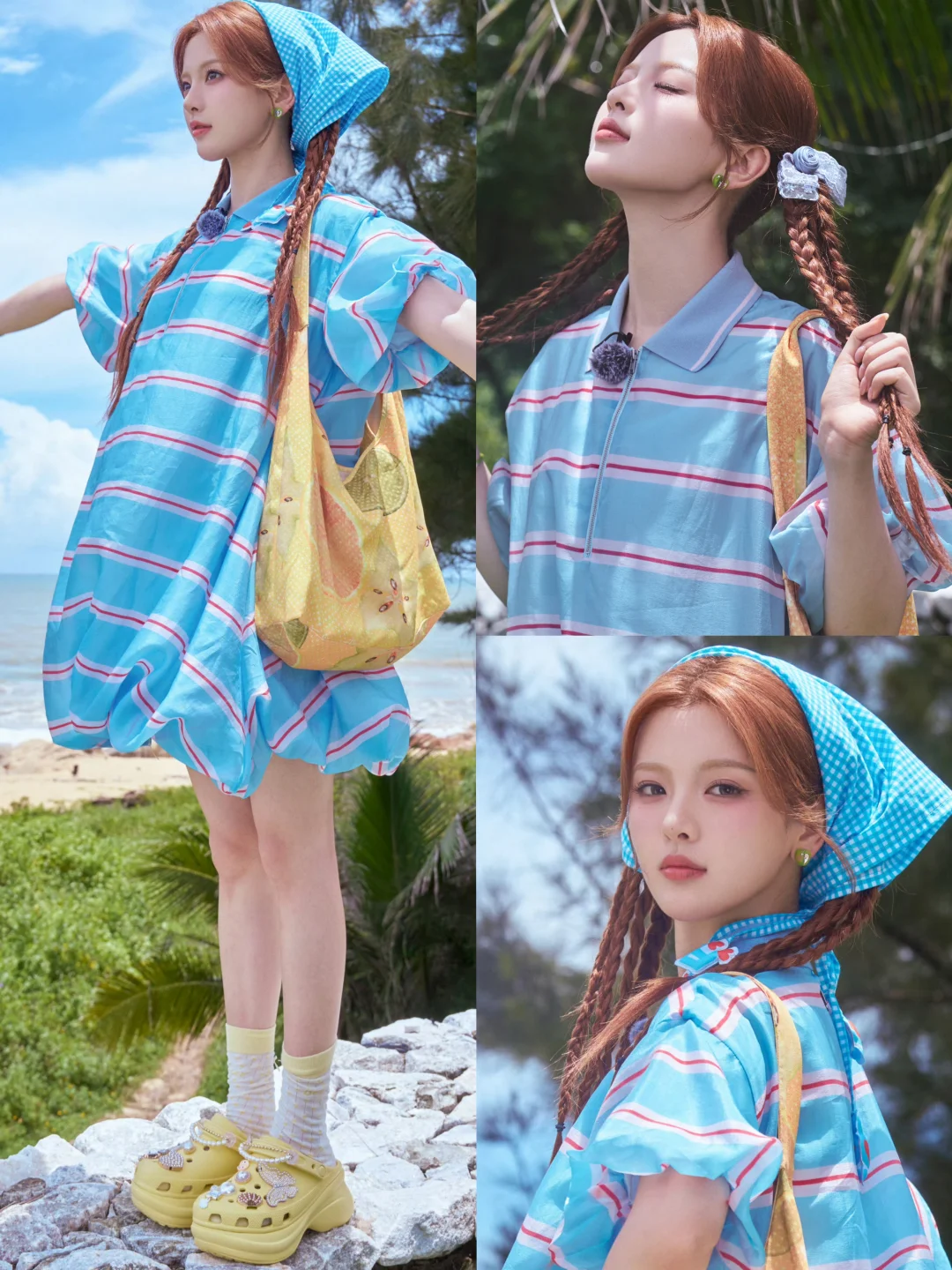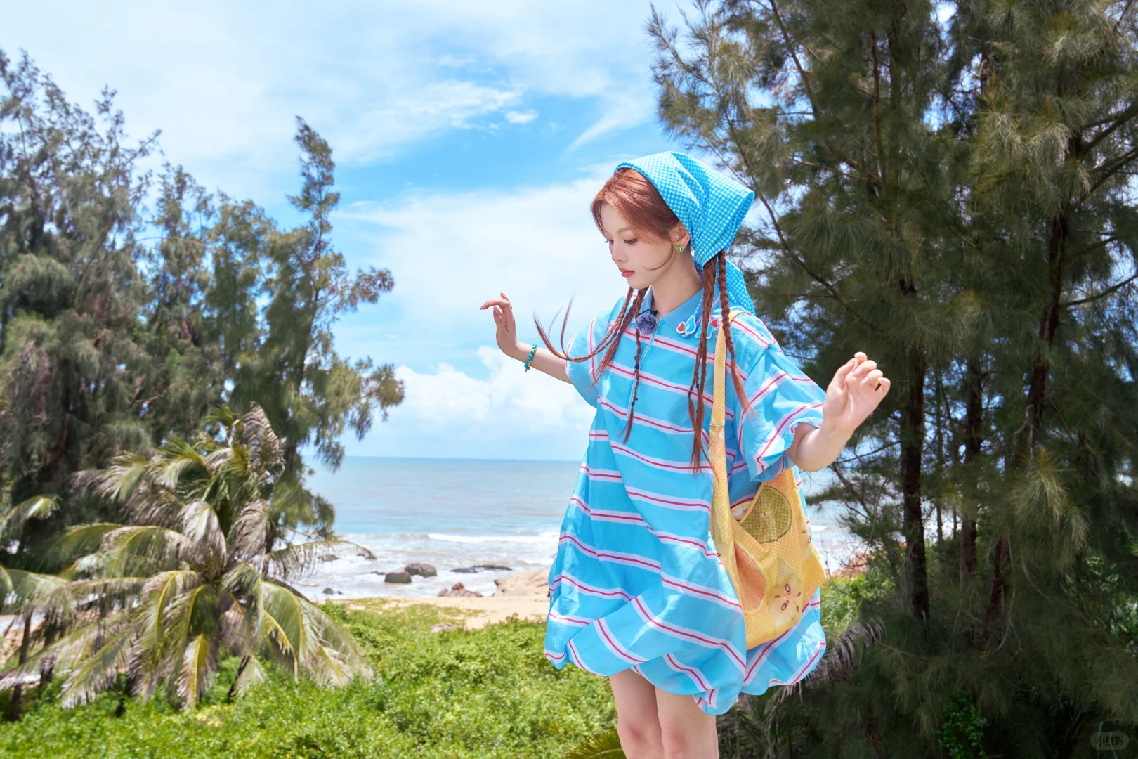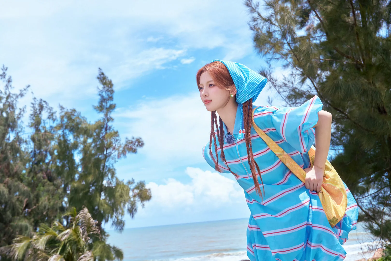 杨超越海边度假风穿搭🌊,这蓝调有点绝