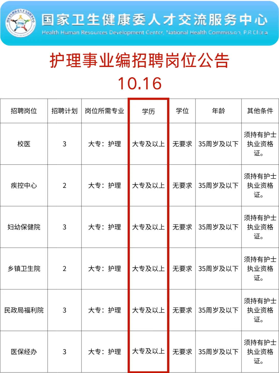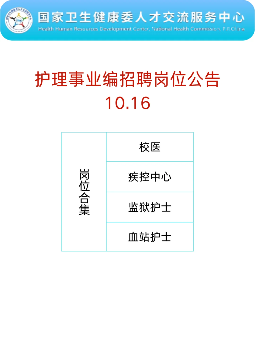 10月16日护理事业编招聘岗位(校医 监狱 血
