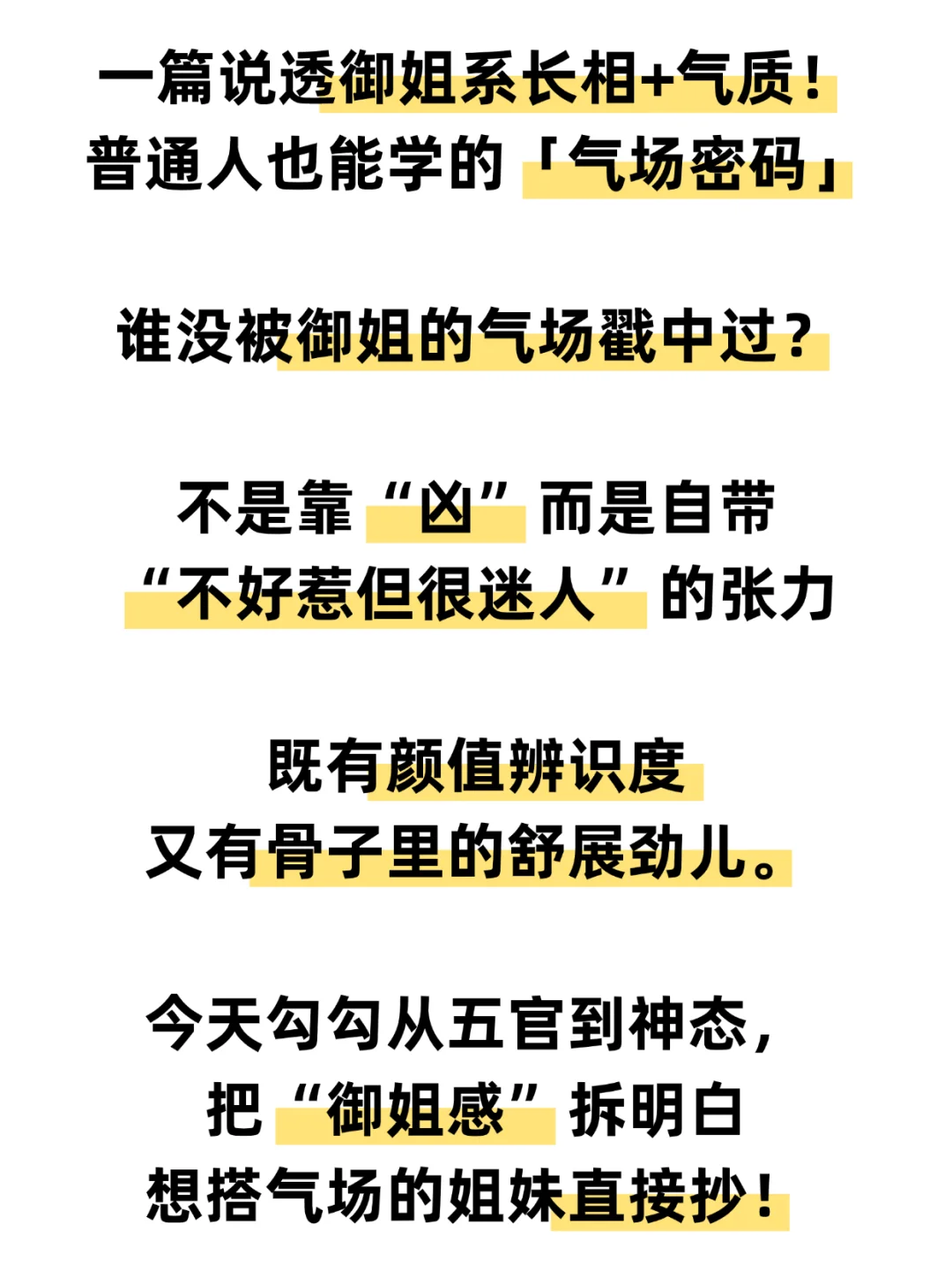 谁不想偶尔支棱起“不好惹但超迷人”的御姐范?不用天生大美女,今天勾勾从五官到穿搭全拆成大白话,看完就会!