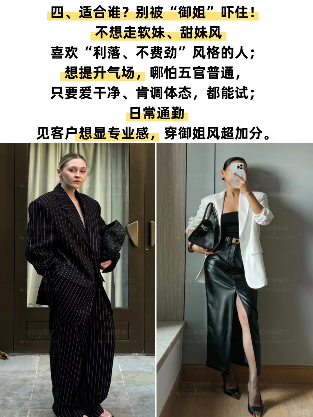 日常通勤、见客户想显专业感,穿御姐风超加分。