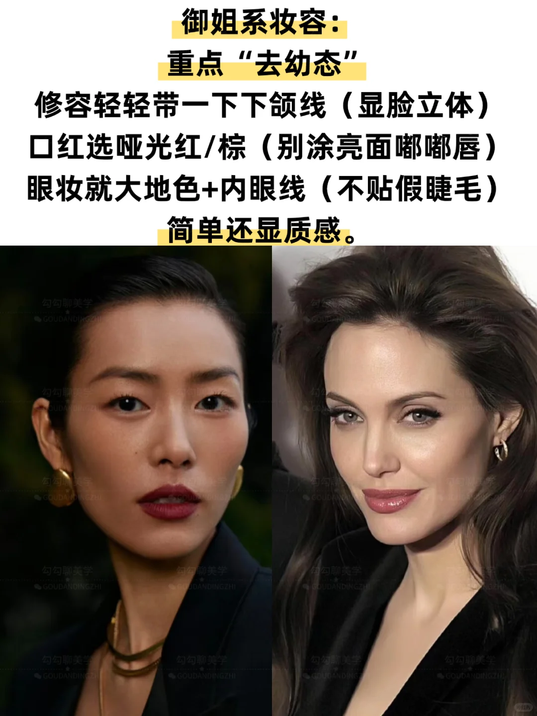 妆容:重点“去幼态”——修容轻轻带一下下颌线(显脸立体),口红选哑光红/棕(别涂亮面嘟嘟唇),眼妆就大地色+内眼线(不贴假睫毛),简单还显质感