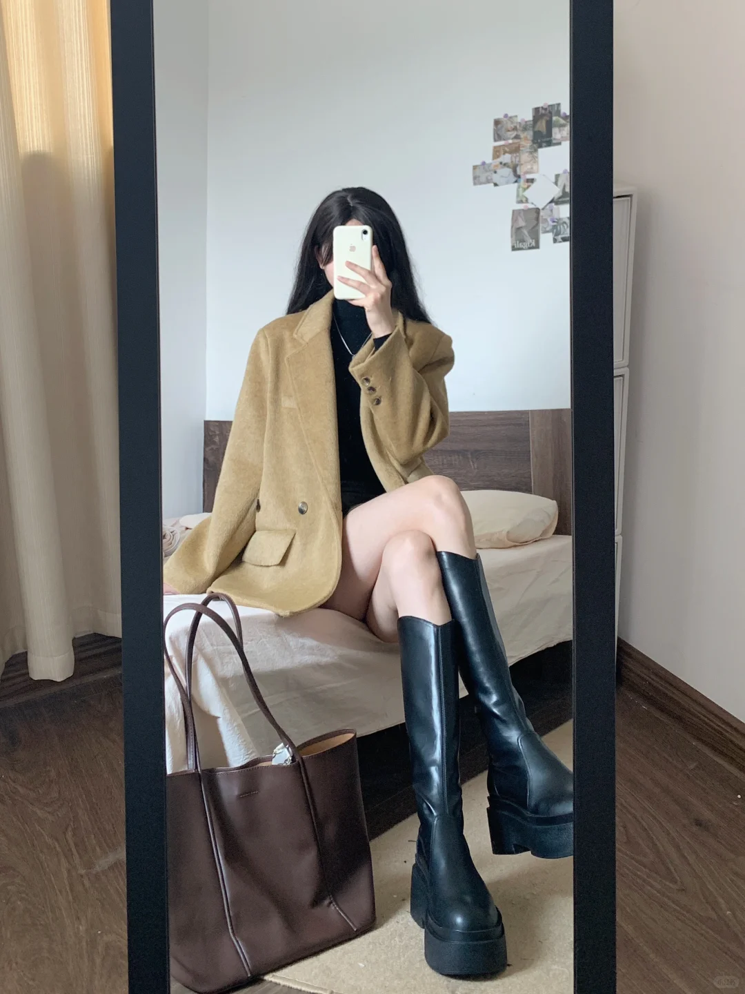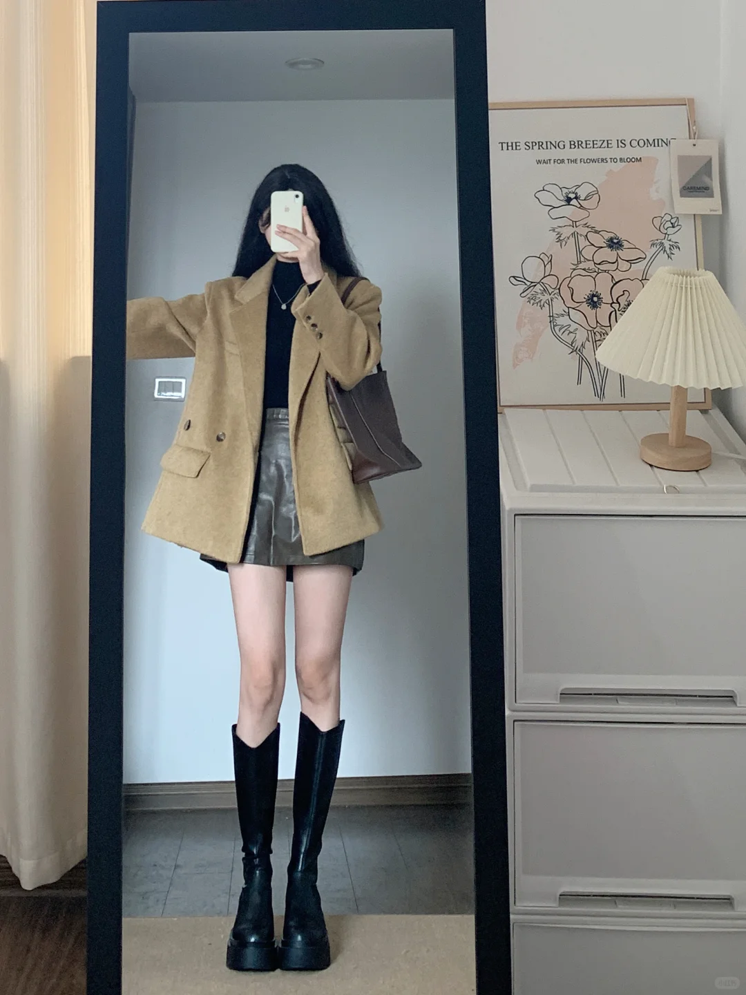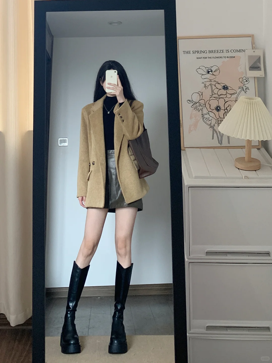 硬挺的版型就很大气!日常很秋冬的颜色~