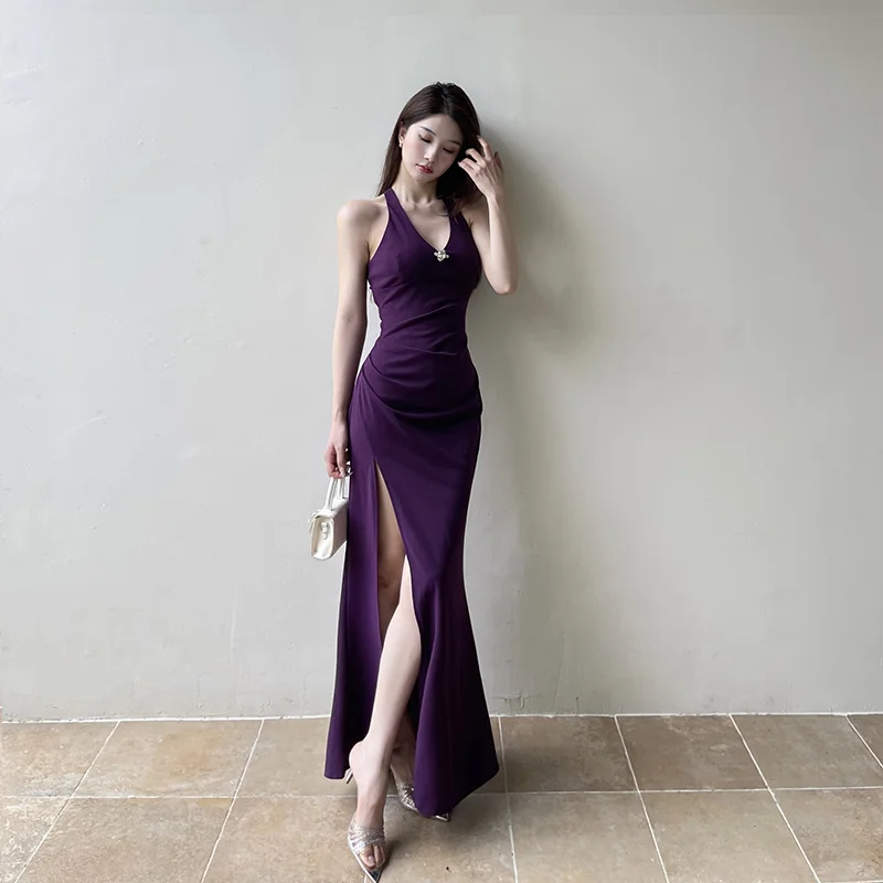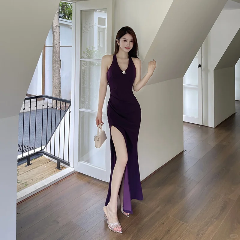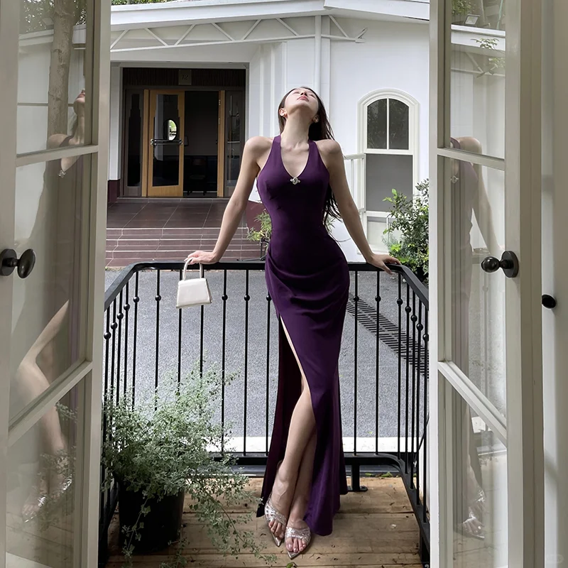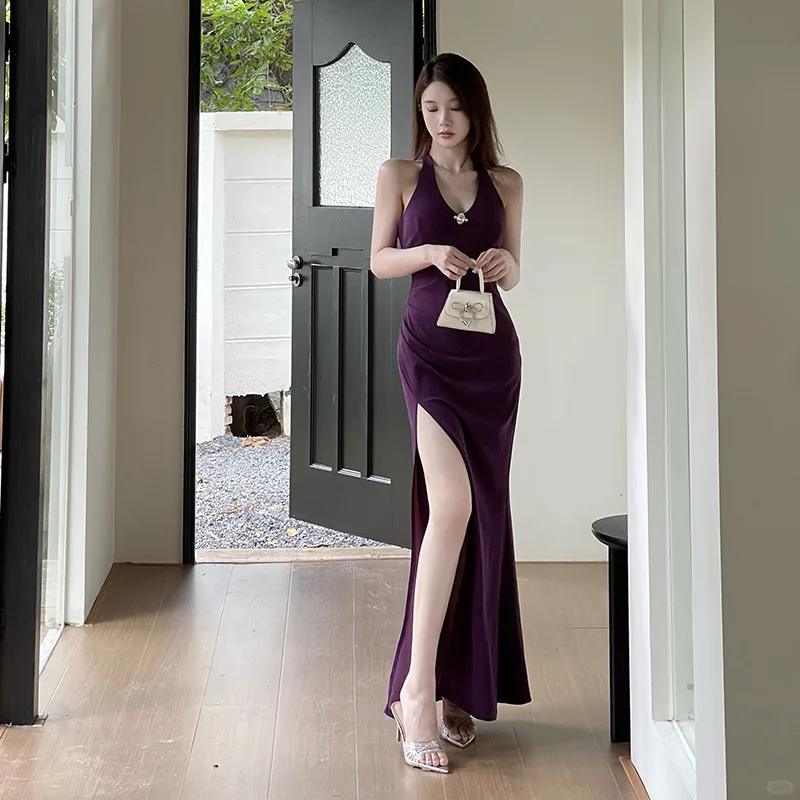 拯救一整个夏天的连衣裙来了,宝子们,这条紫色吊带连衣裙,露背链条设计真的太性感了,气场这一块狠狠的拿捏