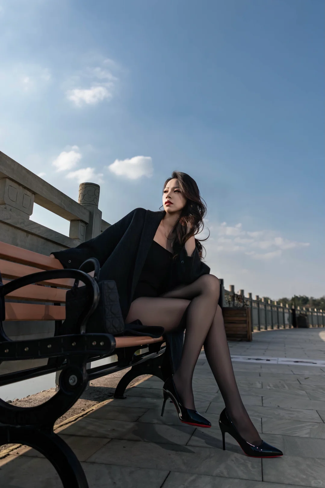 长椅黑丝
