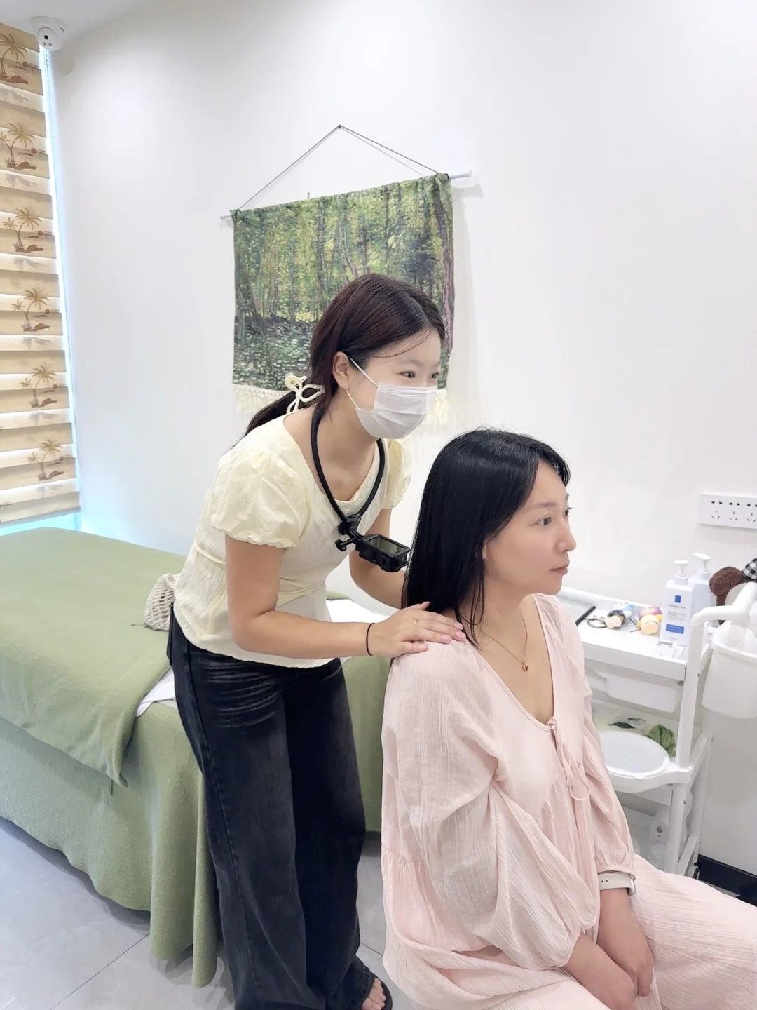 而且店里环境特戳我!不是那种冷冰冰的医美风,进门就是淡淡的檀香,木色家具配着中式小摆件,连灯光都暖乎乎的,坐下来瞬间就不紧张了。