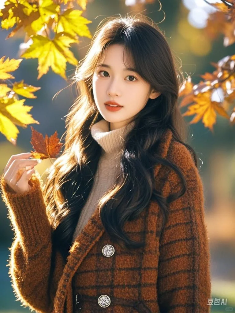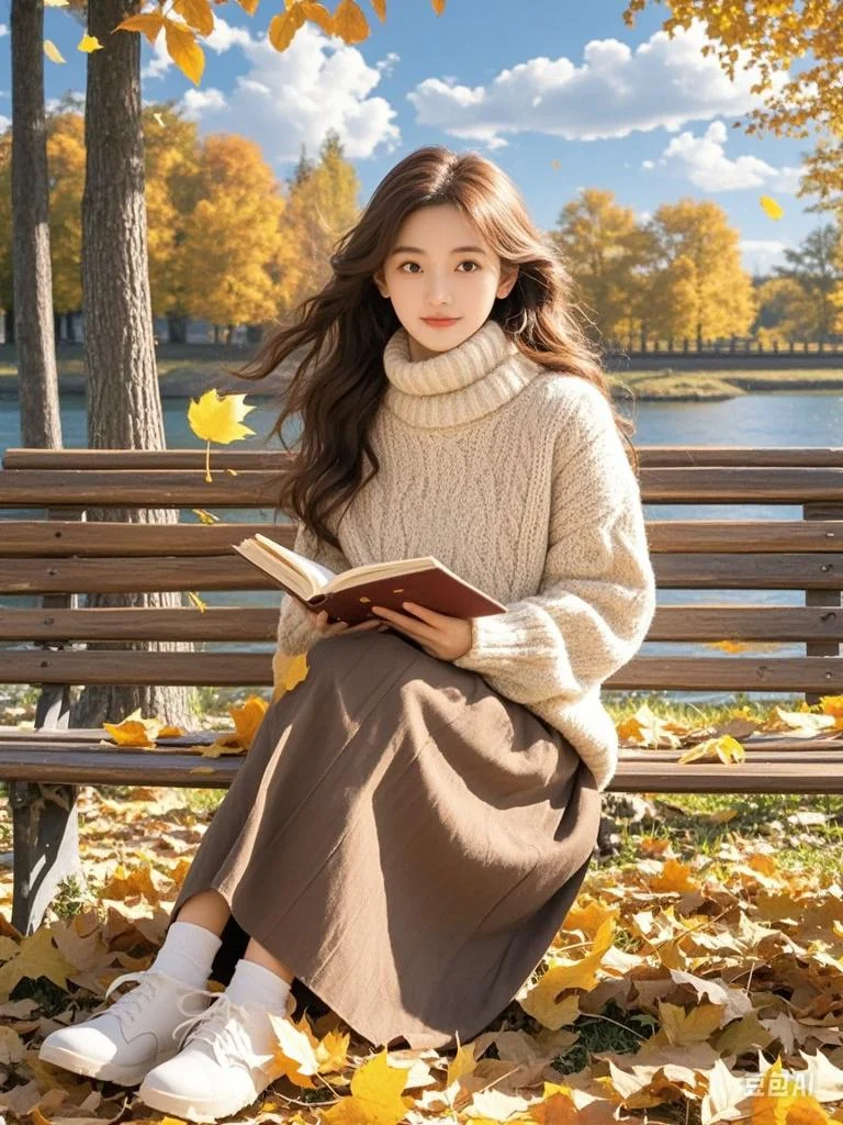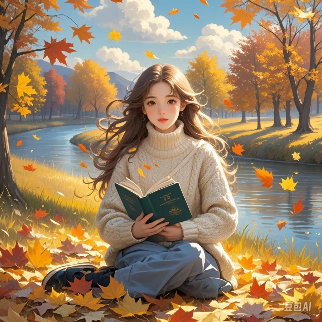 • 少女:少女可以穿着温暖的毛衣或外套,头发可以随风轻轻飘动,表情宁静或略带微笑,手中可以拿着一片落叶或一本书。
