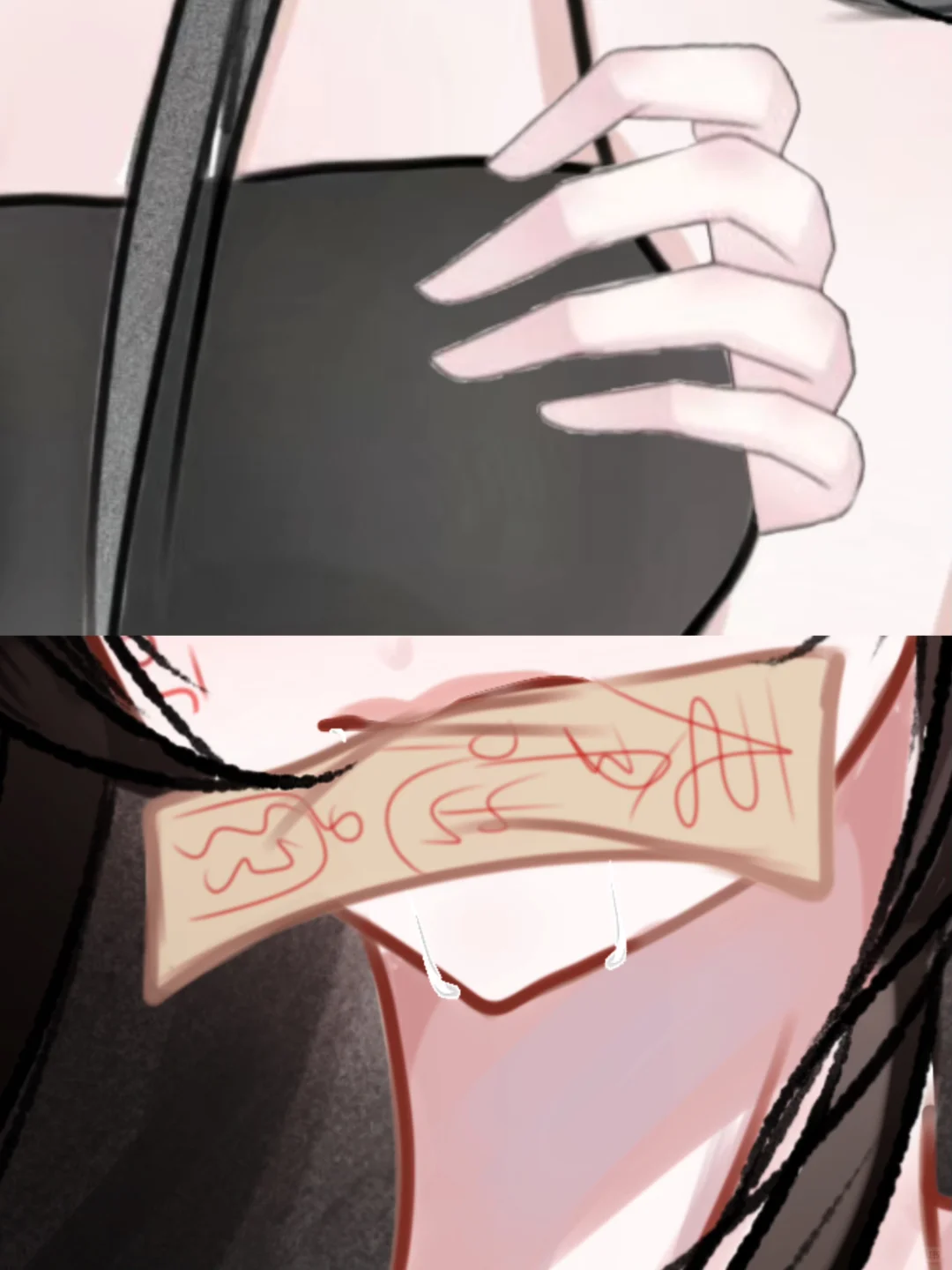 h图🔞看似咬着符纸实则……