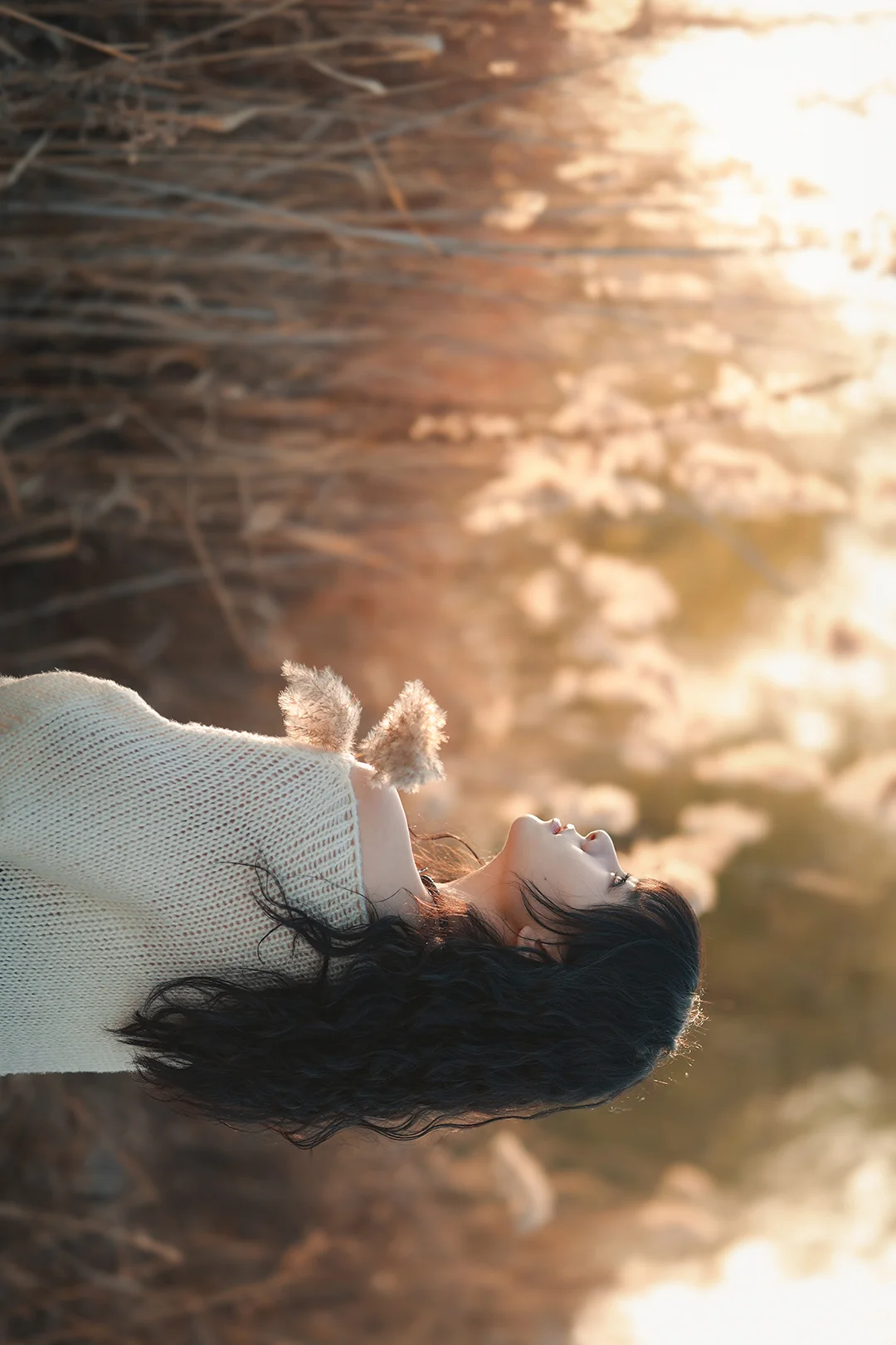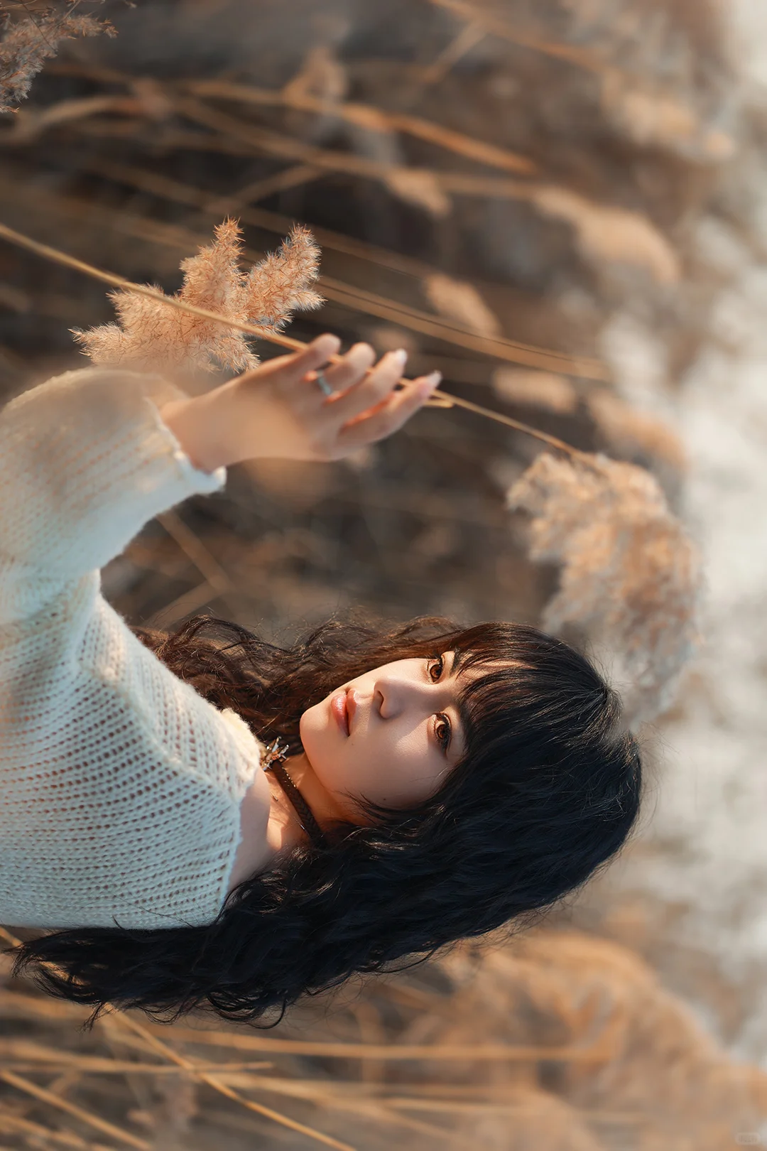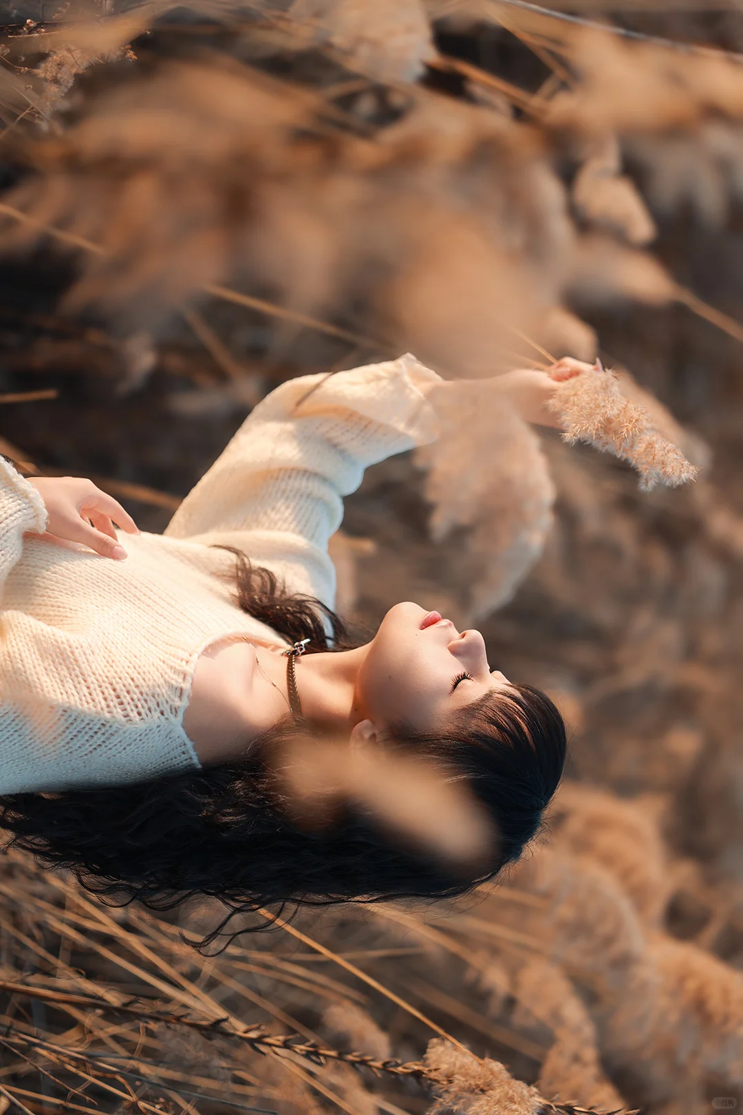 抓住秋天的尾巴芦苇拍照