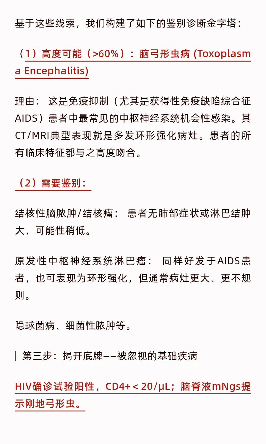 #脑公弓形虫 #弓形虫 #机会性感染 #头痛 #惊厥 #体重下降 #医学科普 #AI健康助手#临床技能 #AI医疗