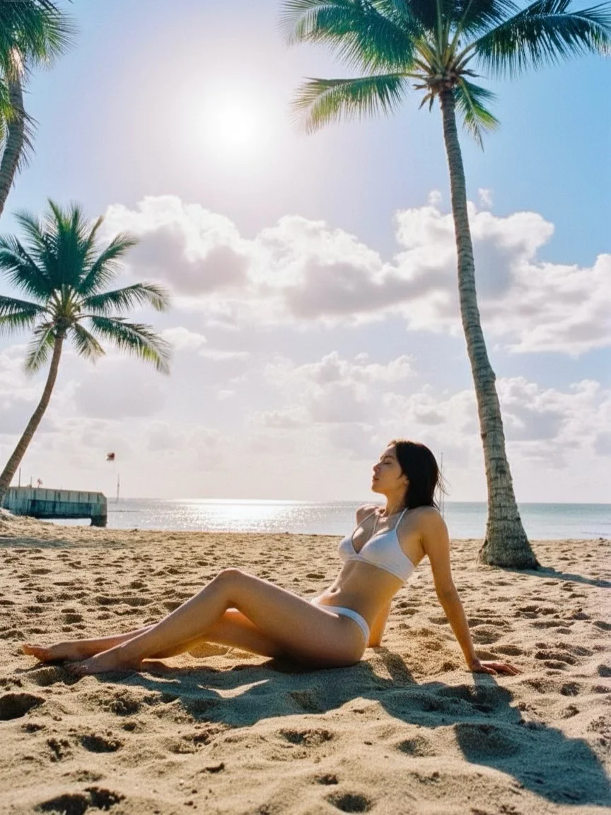 在海滩上拍泳衣真的太美了~