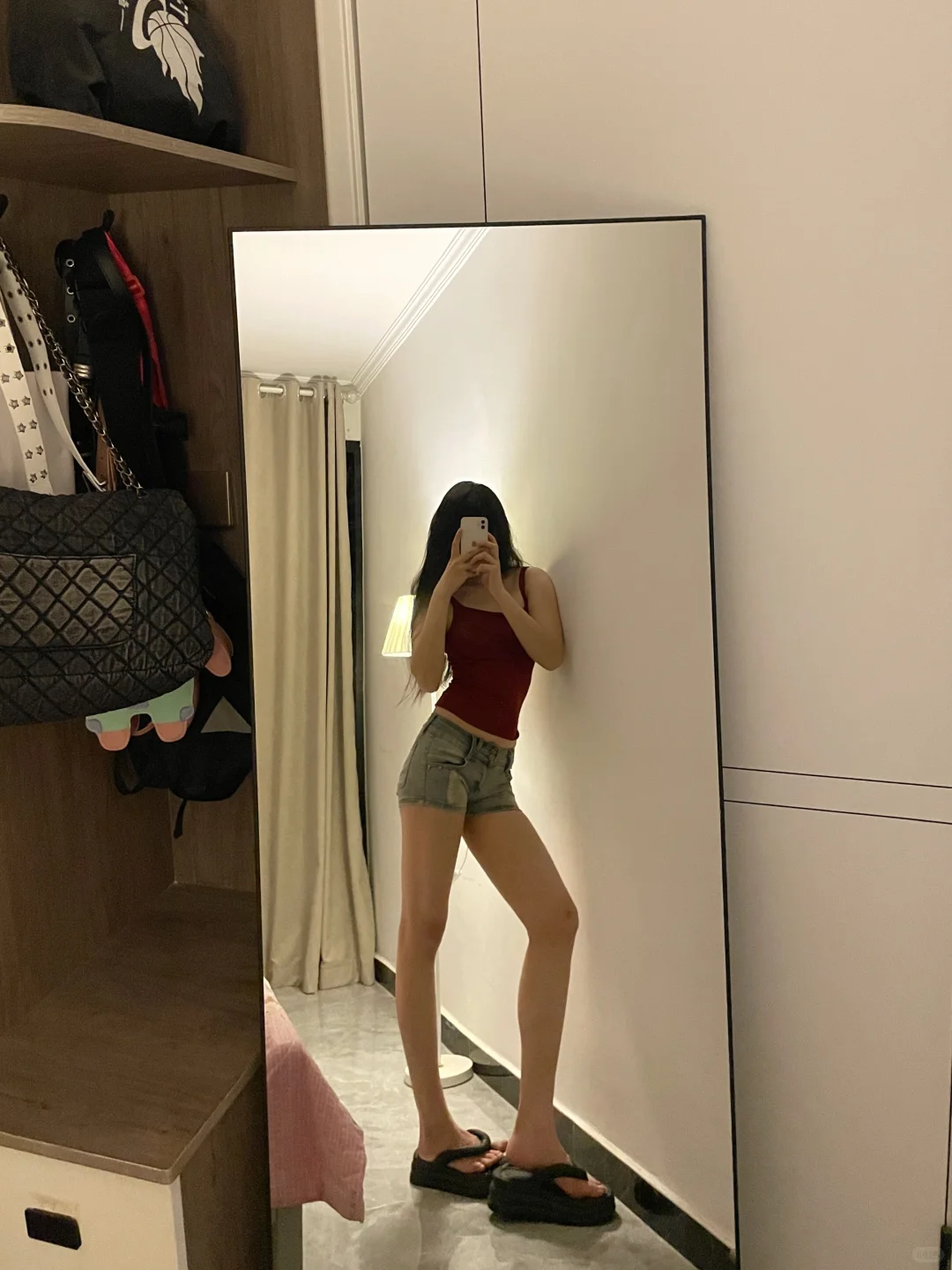 红色吊带好显白!