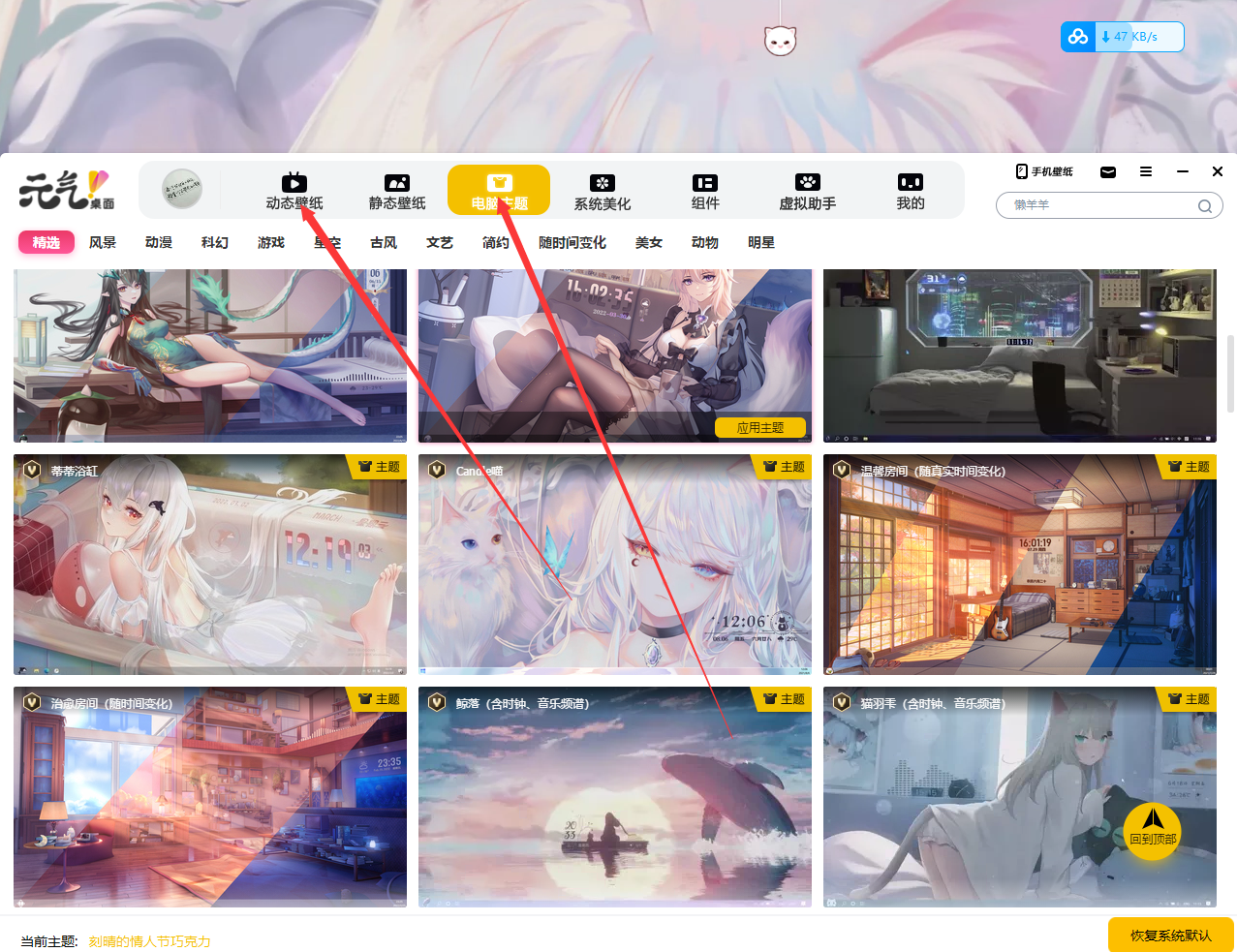 4这时候就是成功了,手动打开元气桌面 找到喜欢的壁纸进行使用即可
