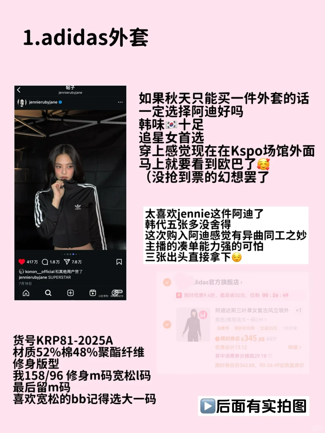 太喜欢jennie这件阿迪了韩代五张多没舍得