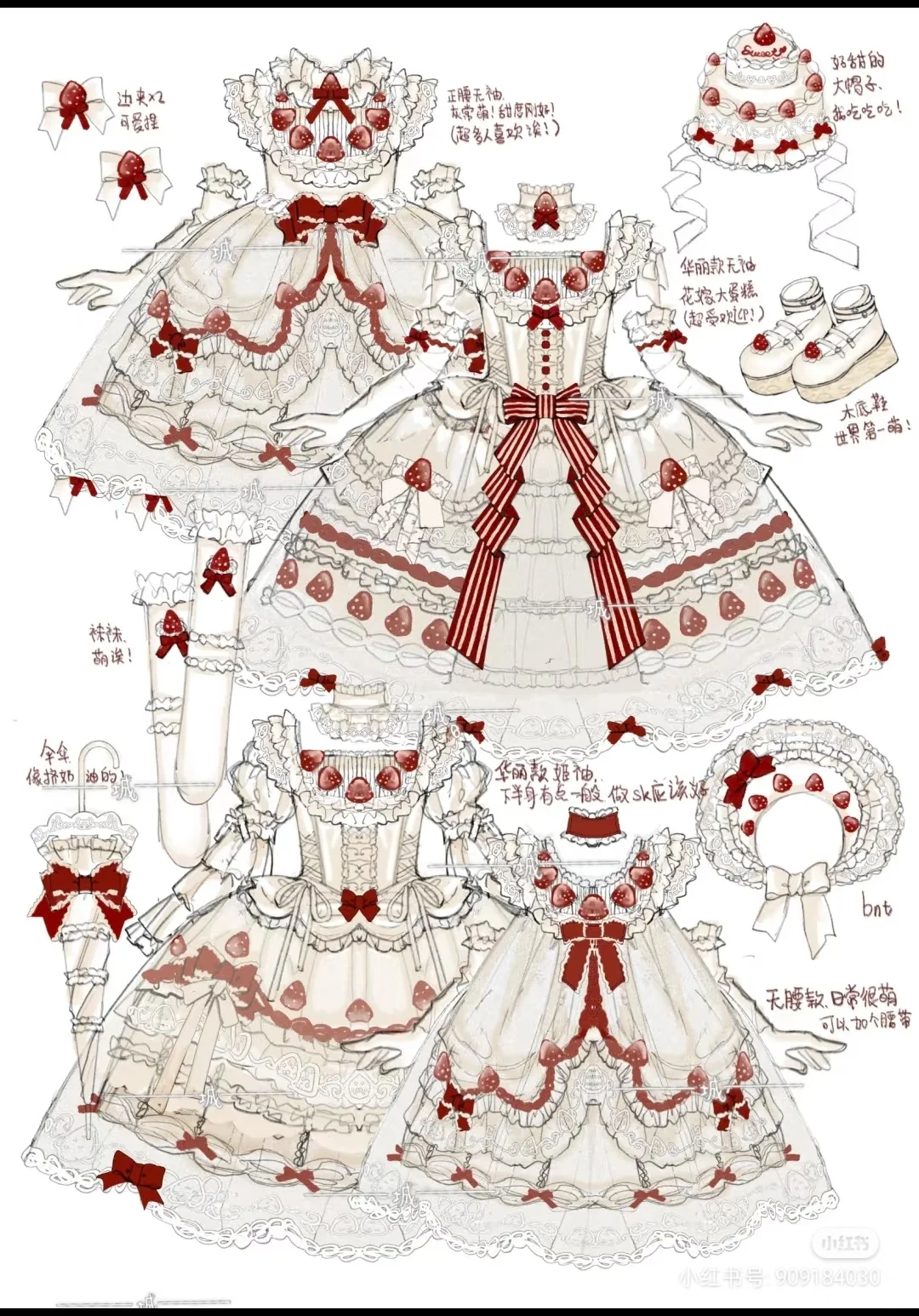 这套设计是设计师多年的心血,一直舍不得出,这期由我们家主厨亲自操刀这品草莓奶油蛋糕,设计师也亲自下厨。这个系列一共会出3到4套,第一期会出图二。宝子们也可以建议下先出哪款,尽请期待。#吃我一波lolita安利 #洛丽塔裙 #服设 #lolita原创设计 #