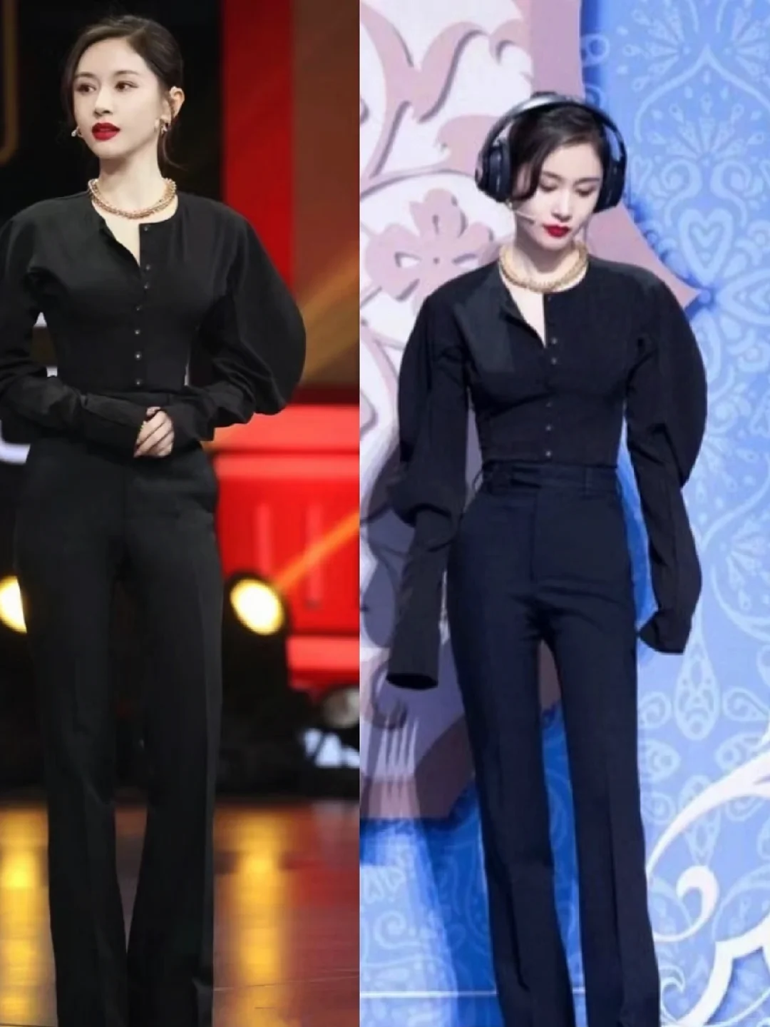 穿短款垫肩西装(衣长过腰线2cm)+高腰烟管裤(裤长盖鞋跟1cm),上短下长切出1:2比例,腿长视觉多10cm。长款衬衫别全塞,只塞前襟中间,更利落。