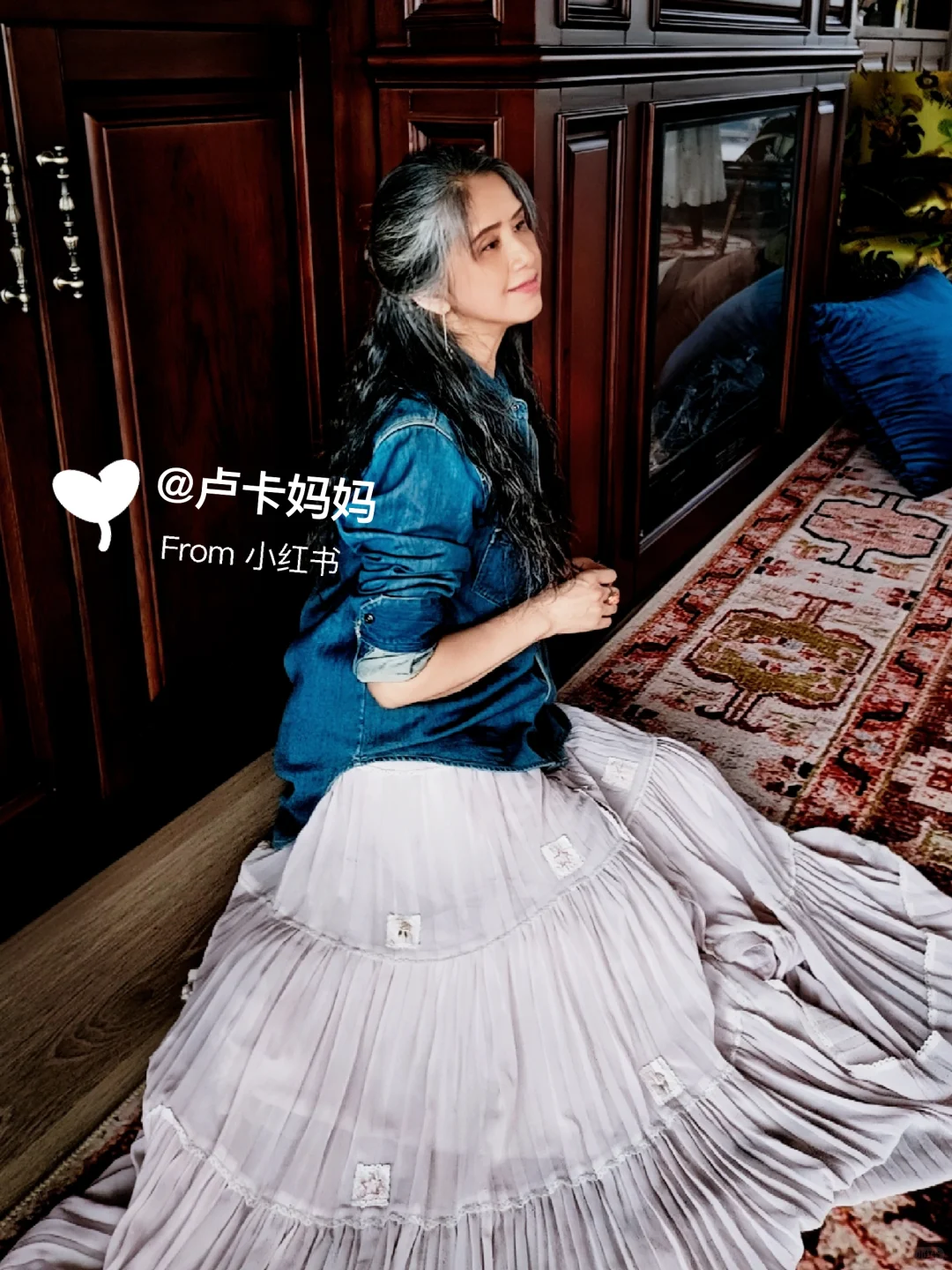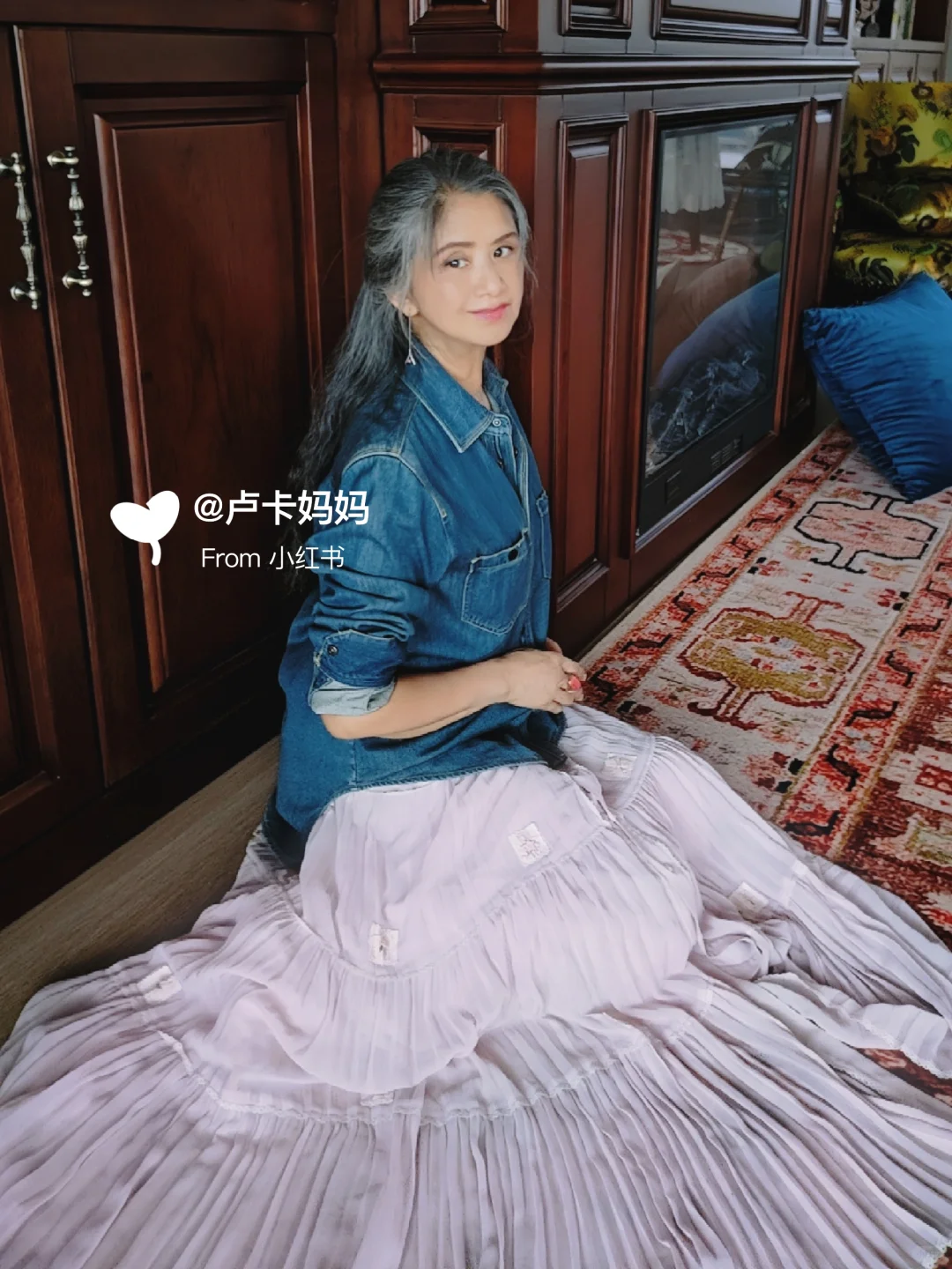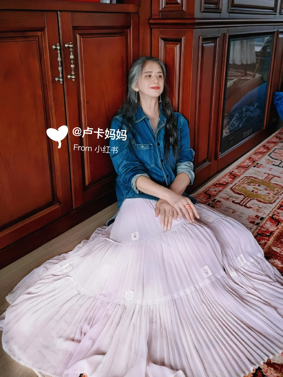 这条裙子是1996还是1998年买的我记不太清楚了。当年真是被它惊艳过。浅浅的粉紫色百褶裙上点缀着不同图案的手工绣花和蕾丝,很大的裙摆,360度转个身会像花一样“哗”的一下子绽放开。