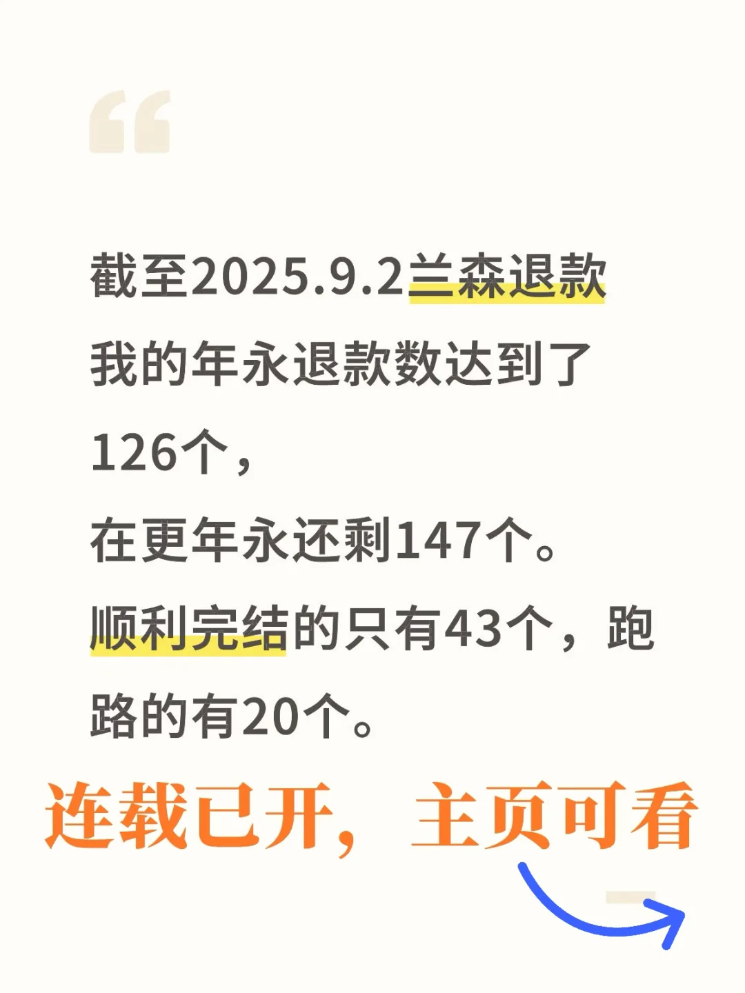 截至2025.9.2兰森退款,我的年永退款数达到了126个,在更年永还剩147个。