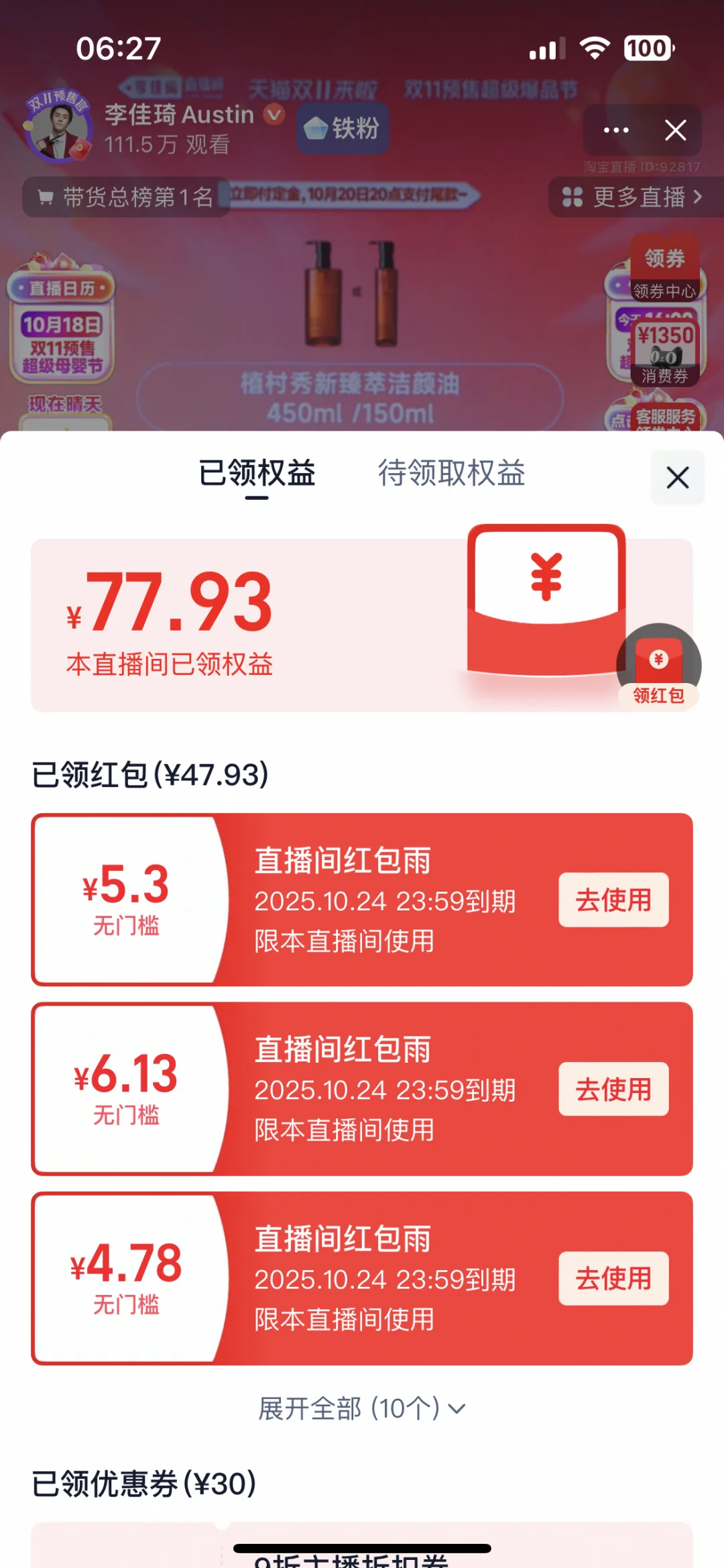 4个号最多的抢了40多块钱,有2个只抢了十几块钱的,太难了吧……#李佳琦红包