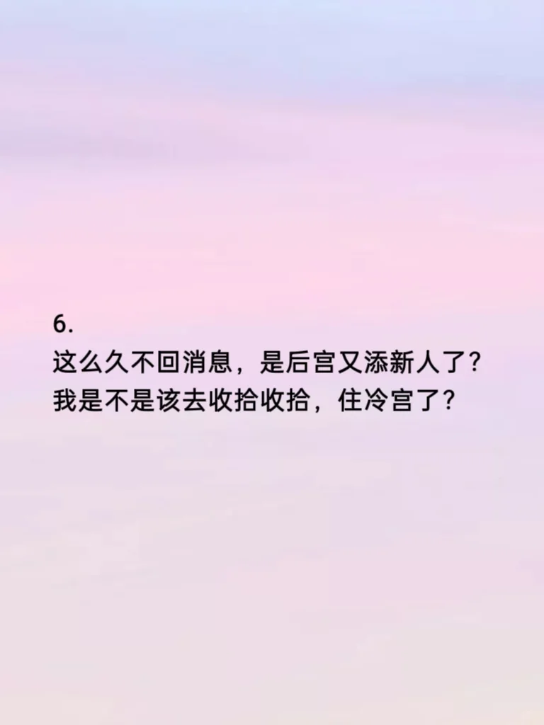 6. 这么久不回消息,是后宫又添新人了?我是不是该去收拾收拾,住冷宫了?