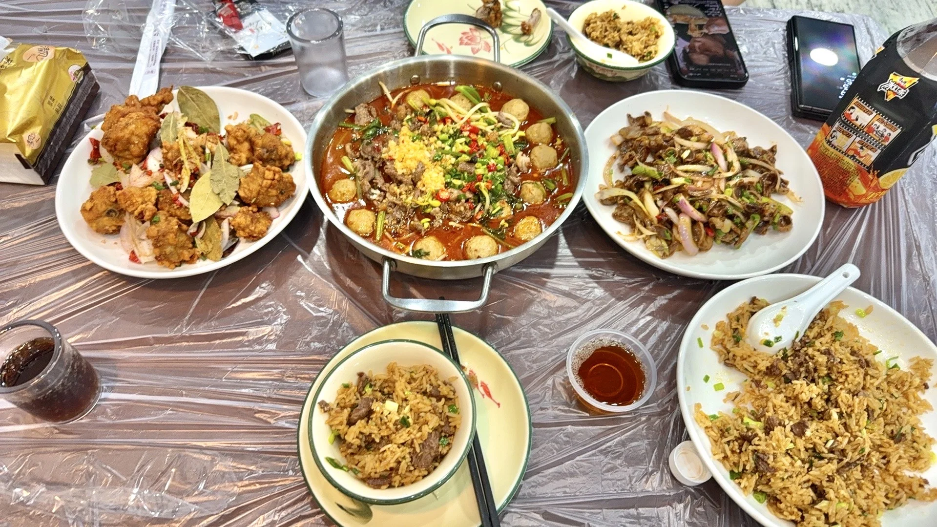 第一次吃这家店是外卖5月23日的时候我还清晰的记得那天下着雨,我和室友两个人点外卖 点了这家店的牛肉炒饭和小郡肝。当时打开的第一口就被惊艳到了,无论是牛肉炒饭还是特殊的湿感小郡肝的做法都是yyds。就这第一次外卖之后就有了后面的每一次堂食。以前还没那么火的时候老板娘还可以帮忙留菜。现在能点到外卖都算是运气好了。去店里吃过五六七八次了,记不清了拍出来的照片没那么好看,翻了翻相册都是桌上光盘的照片,想想发出来没那么雅观大家凑活着看。