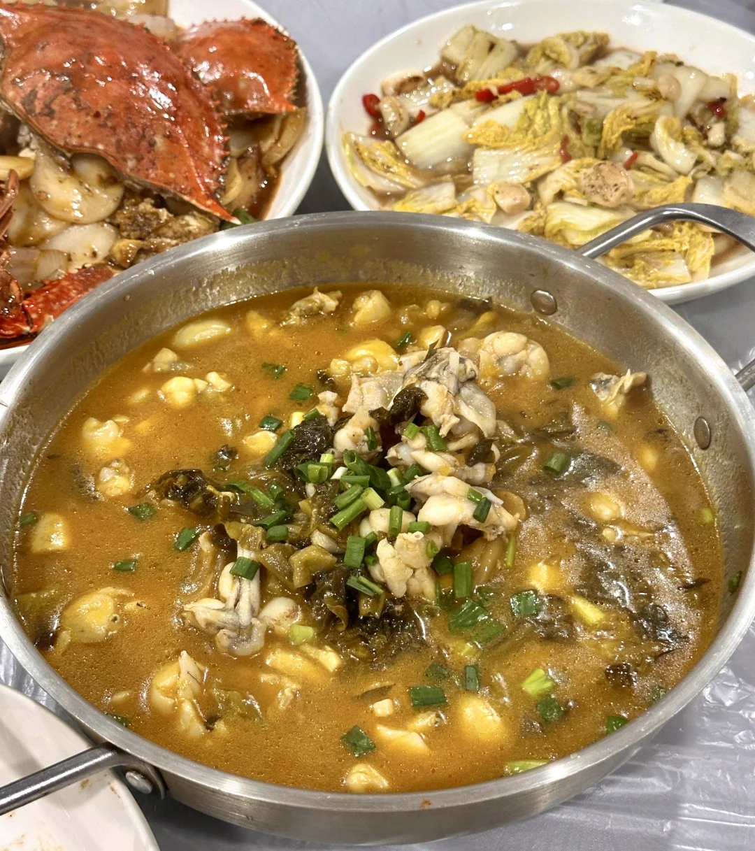 菜系:海鲜河鲜都是应季菜,每个季节都不一样。其他有一些长期有的。推荐几个菜:黑椒小郡肝(绝对和外面吃到的不一样) 水煮吊龙(要加贡丸和虾)家常牛蛙 椒盐西葫芦 鸭舌鸡爪煲 香辣螺蛳 香辣蟹必须点 有时候还有椒盐皮皮虾 最后牛肉炒饭!一定要多加蛋!