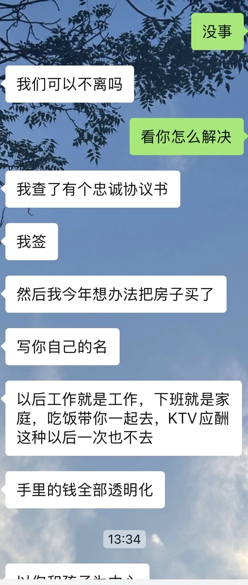 今年四月份,他和另外一个人要去外地拜访客户,人家招待也是那一套,在商k。我当时就心慌了,我很怀疑他,因为我不信,我也不敢相信,他又一次点了,他给我报备都是清场要不就是出去接电话,他喝多了,人家拿着他的手往🐻上放,借着酒劲儿他摸着玩,我现在打出来这个字我都恶心。他没有一次愧疚,他应该只是觉得自己没有藏好。