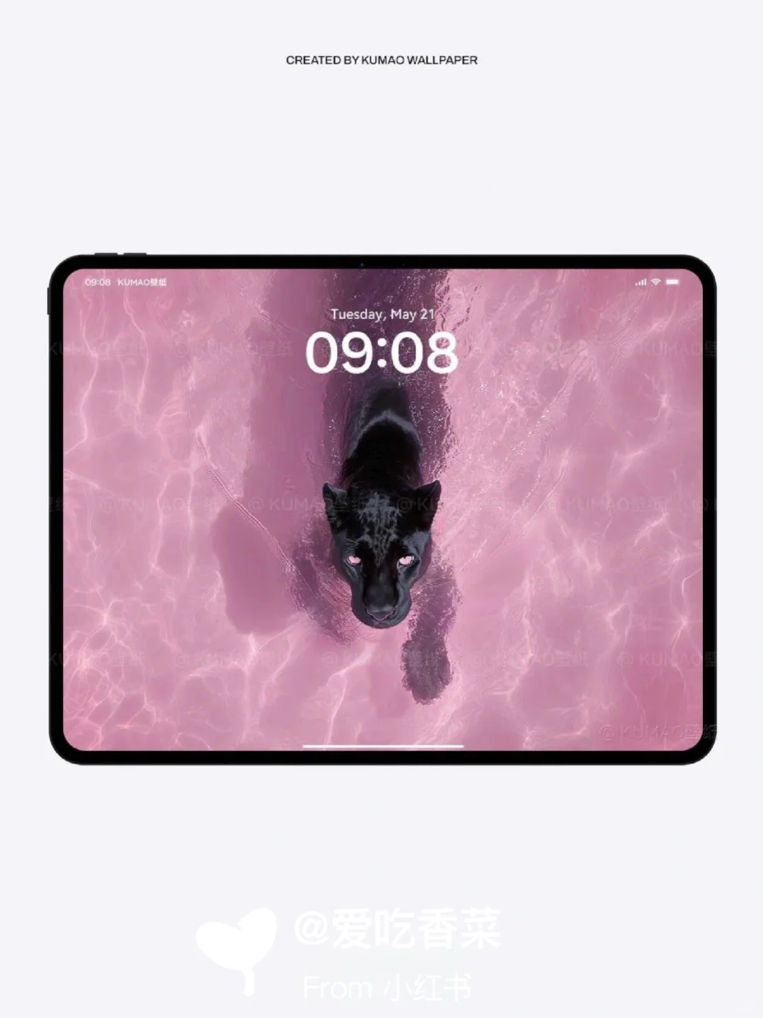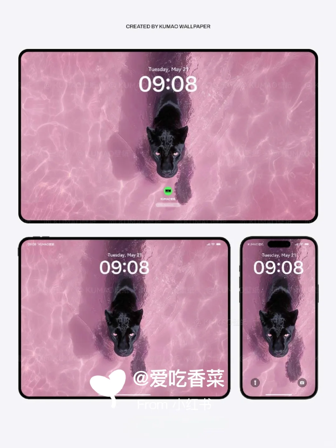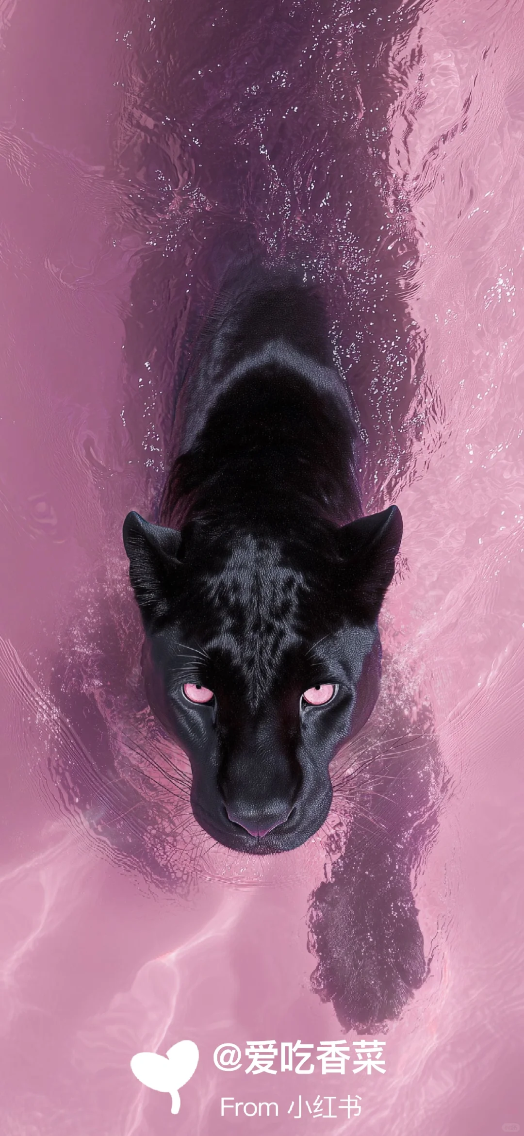 粉波豹影|梦幻粉水中的甜野黑豹|动物壁纸