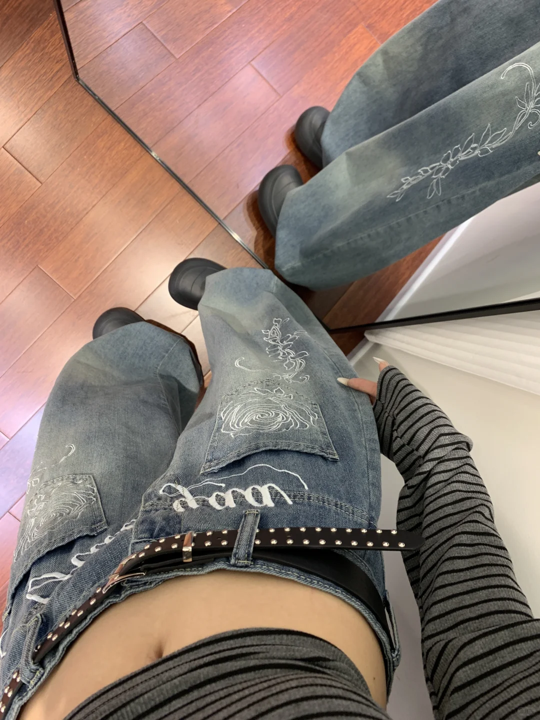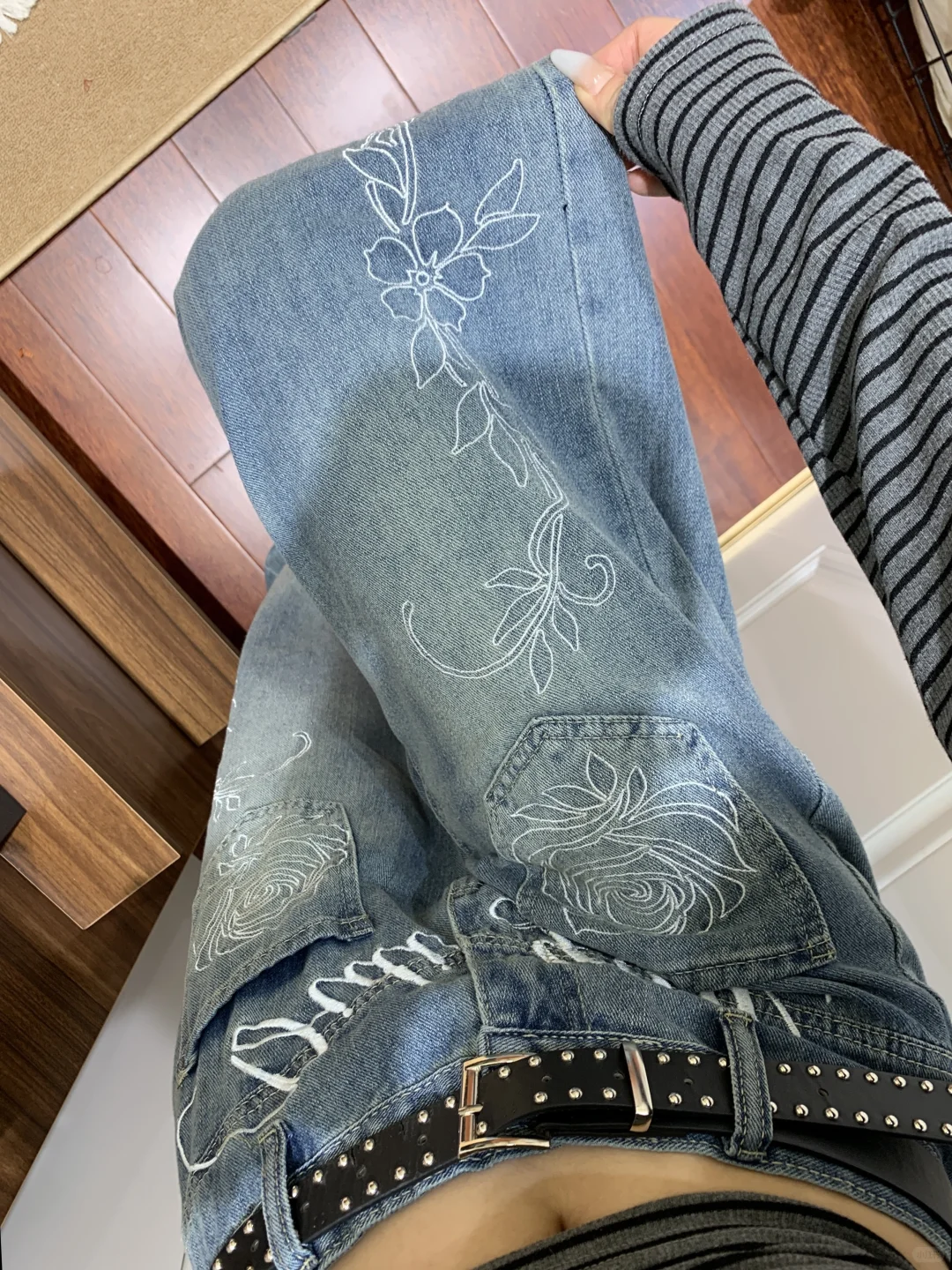 妈生好裤!这刺绣牛仔裤也太显腿长了