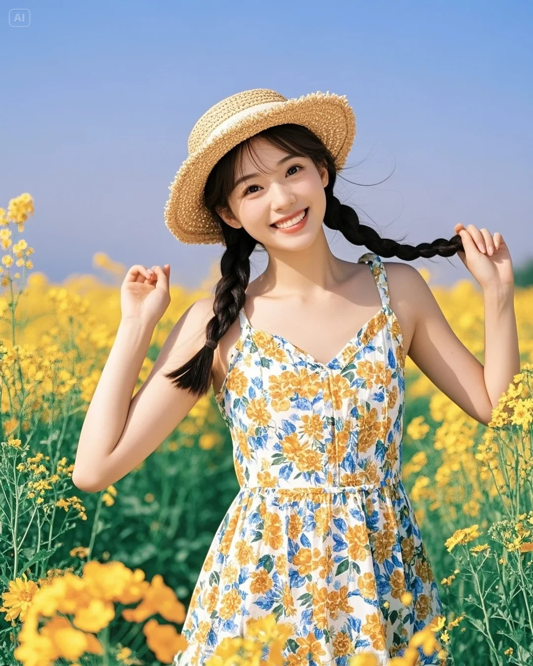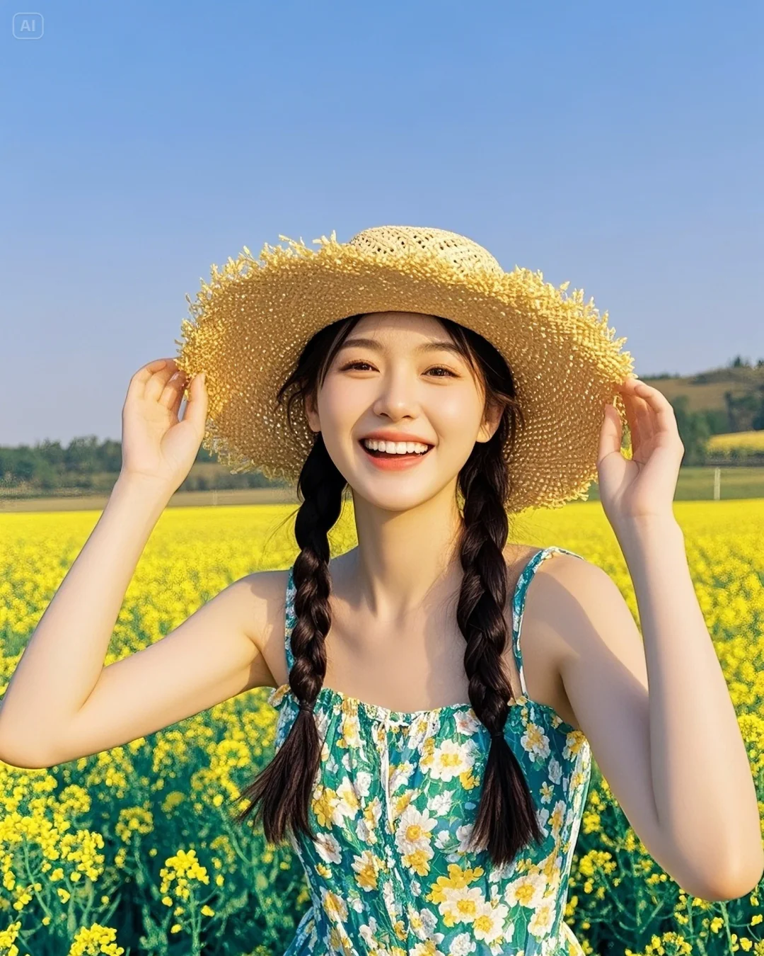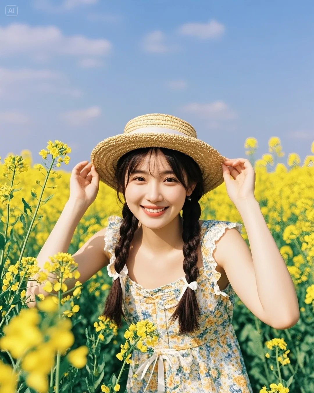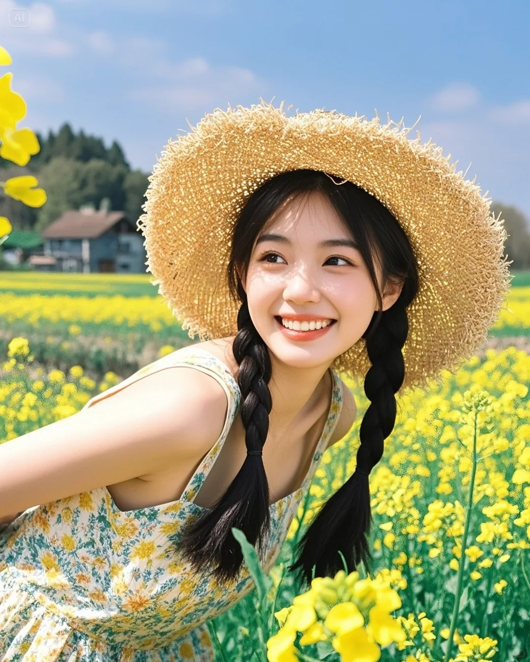 🌸春风一吹秒回18岁/草帽压不住的麻花辫/所有不开心都被油菜花没收啦!