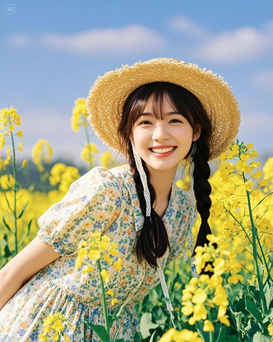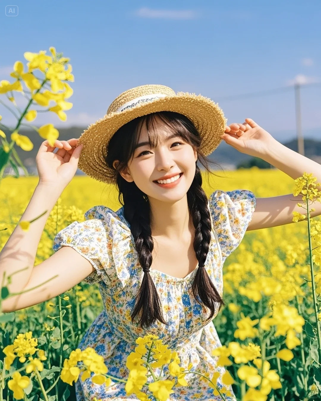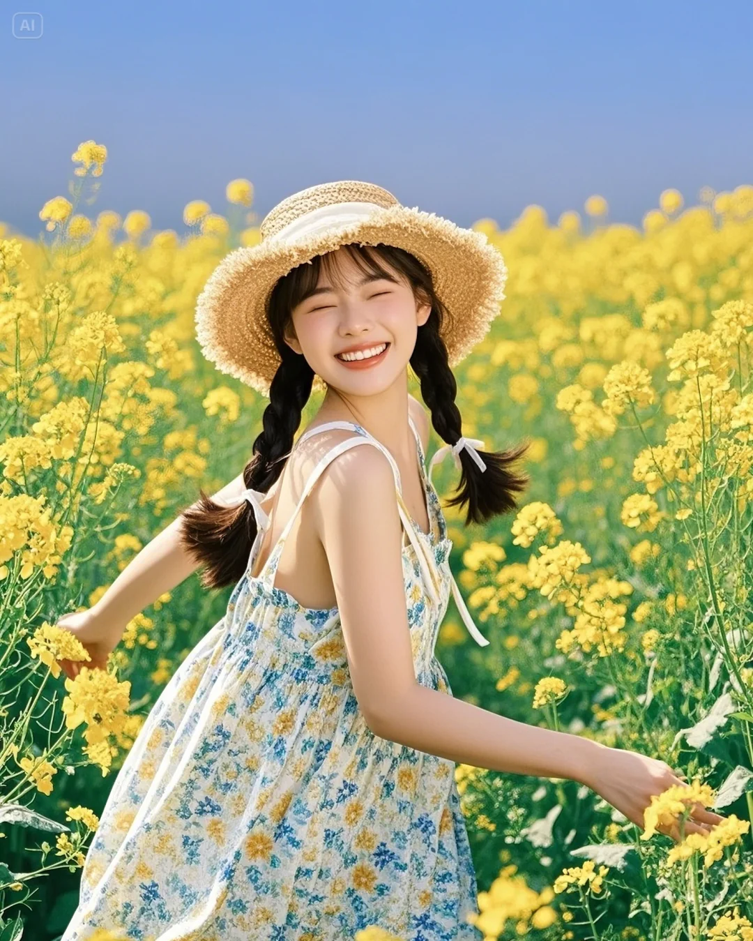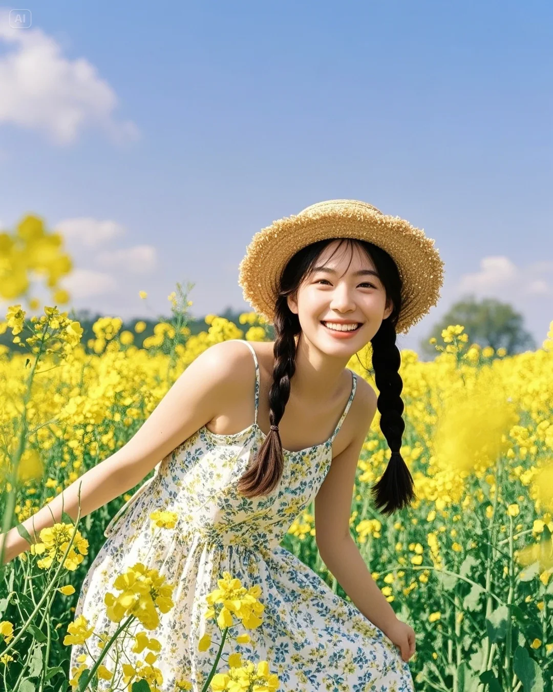 🌸春风一吹秒回18岁/草帽压不住的麻花辫/所有不开心都被油菜花没收啦!