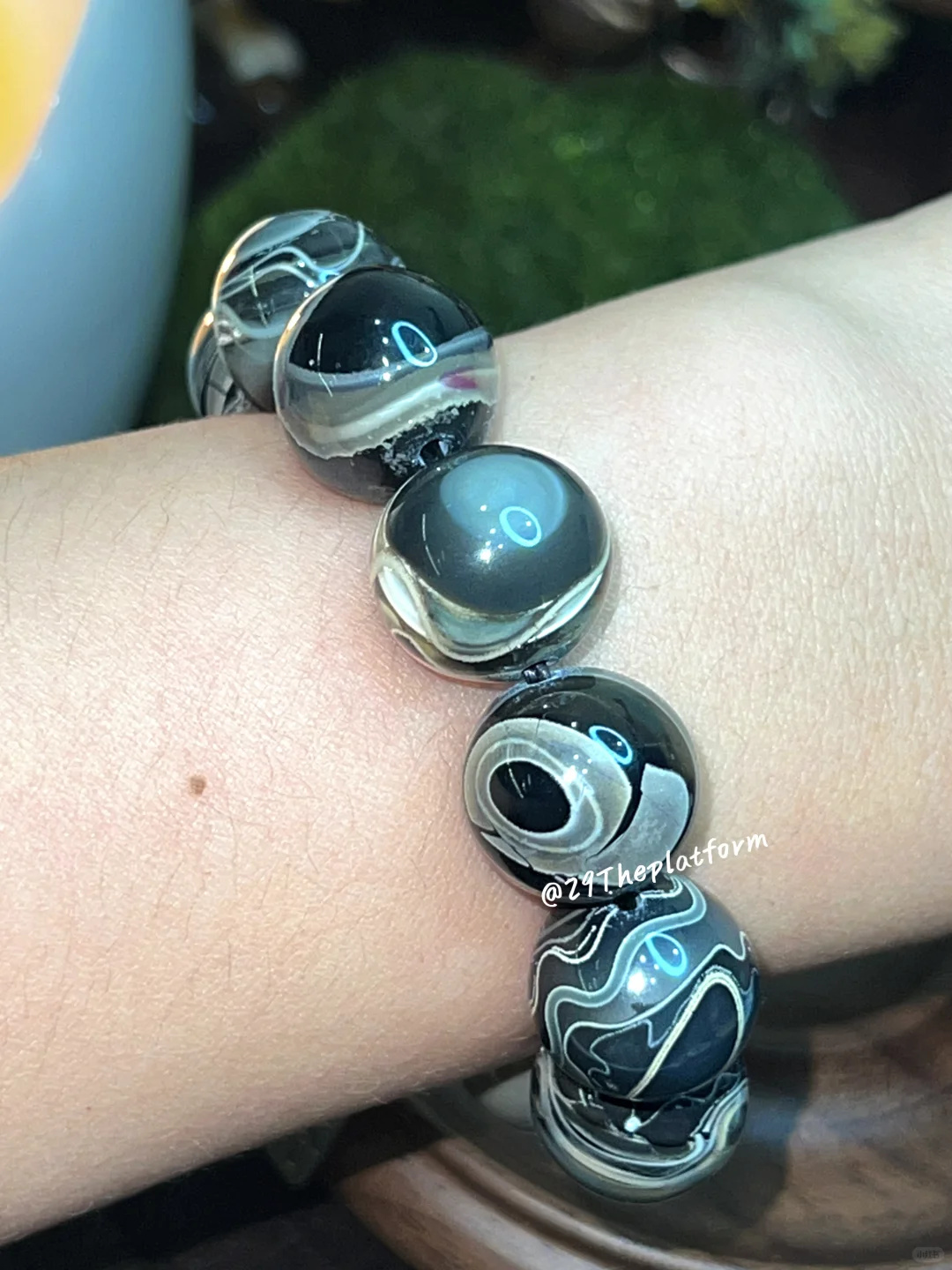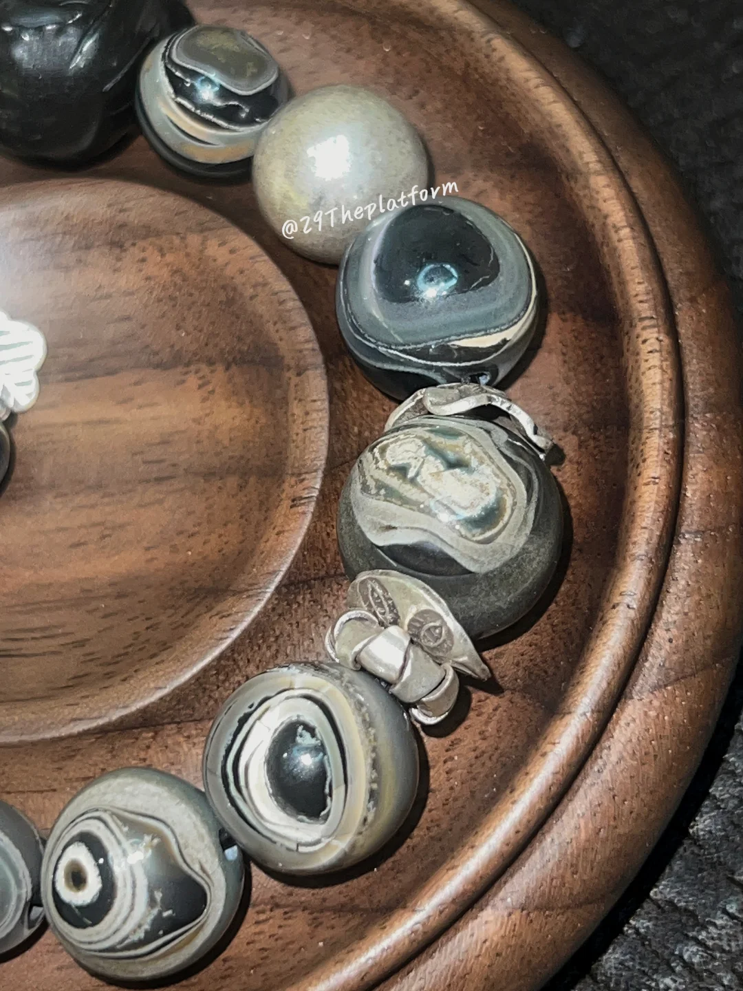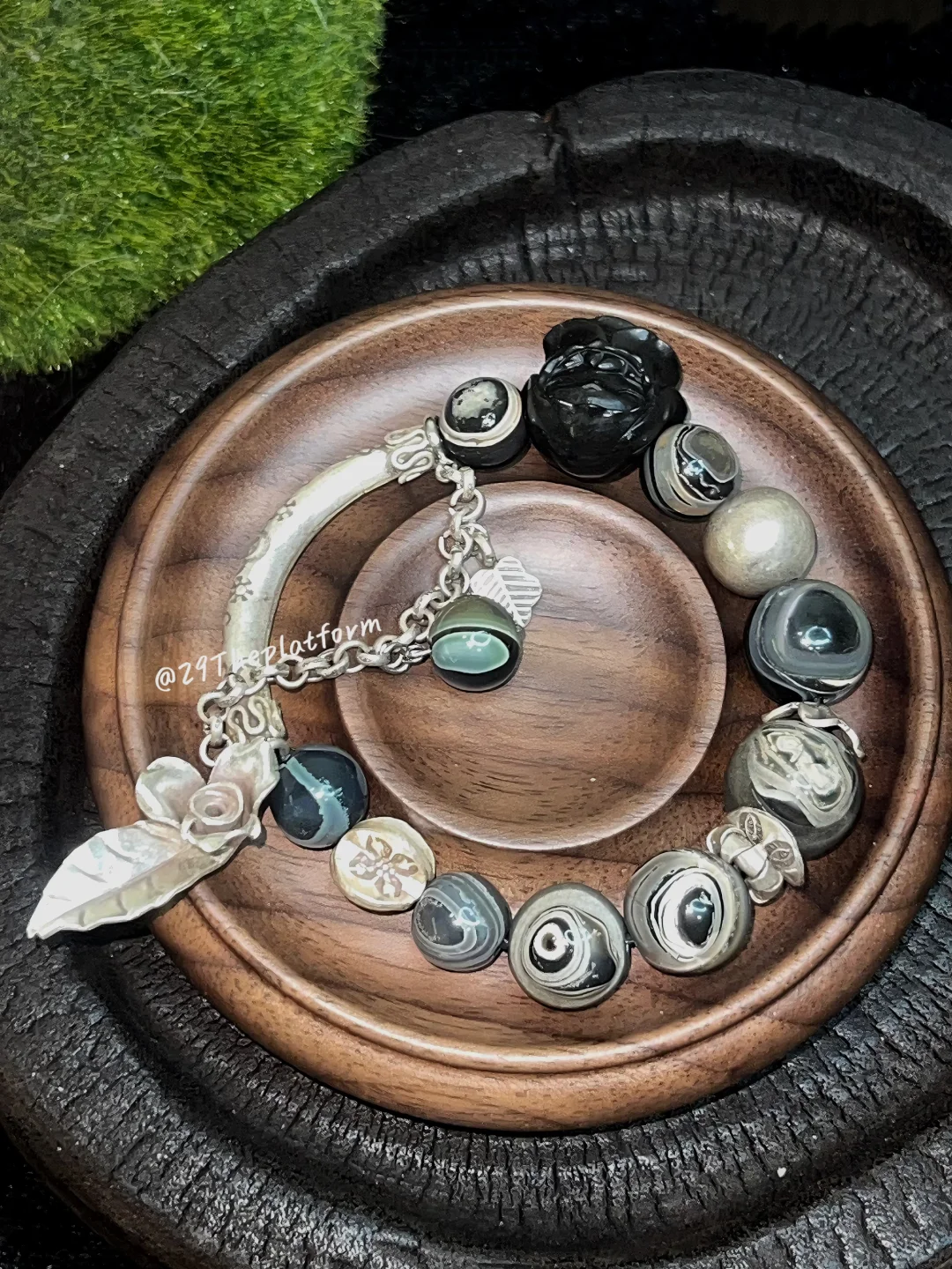阿拉善黑色呼料遇到冷冽的金属纹路