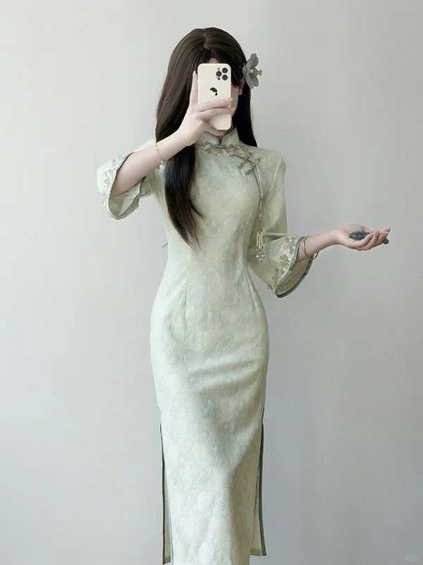 #新中式穿搭 #国风少女 #日常旗袍 #改良旗袍 #国风旗袍 #绿色旗袍 #旗袍秋季穿搭 #倒大袖旗袍 #小红书市集秋上新 #秋天的第一套新衣 @绵季女装