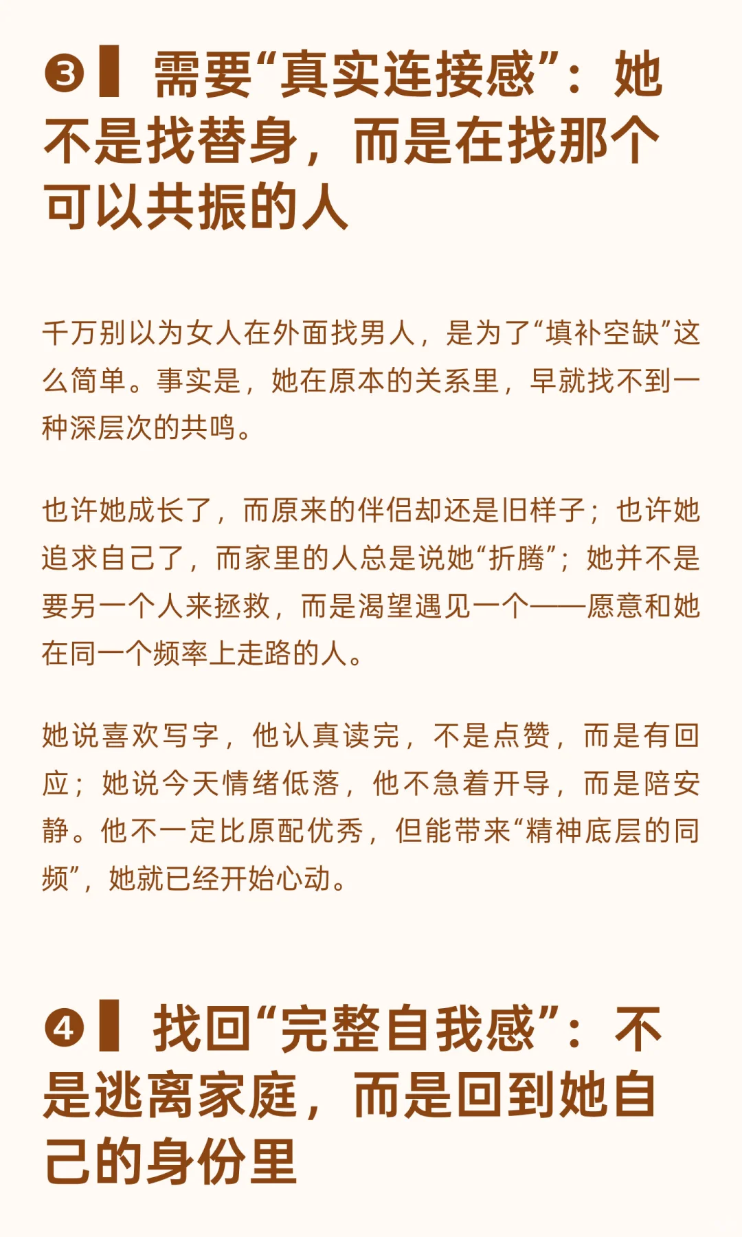 女人出轨往往源于渴望被珍视、倾听、连接、完整自我和被需要。她们在原生家庭中长期缺乏关注,渴望在新关系中找到深层次共鸣,重新找回自我价值,感受到被真正珍视和理解。