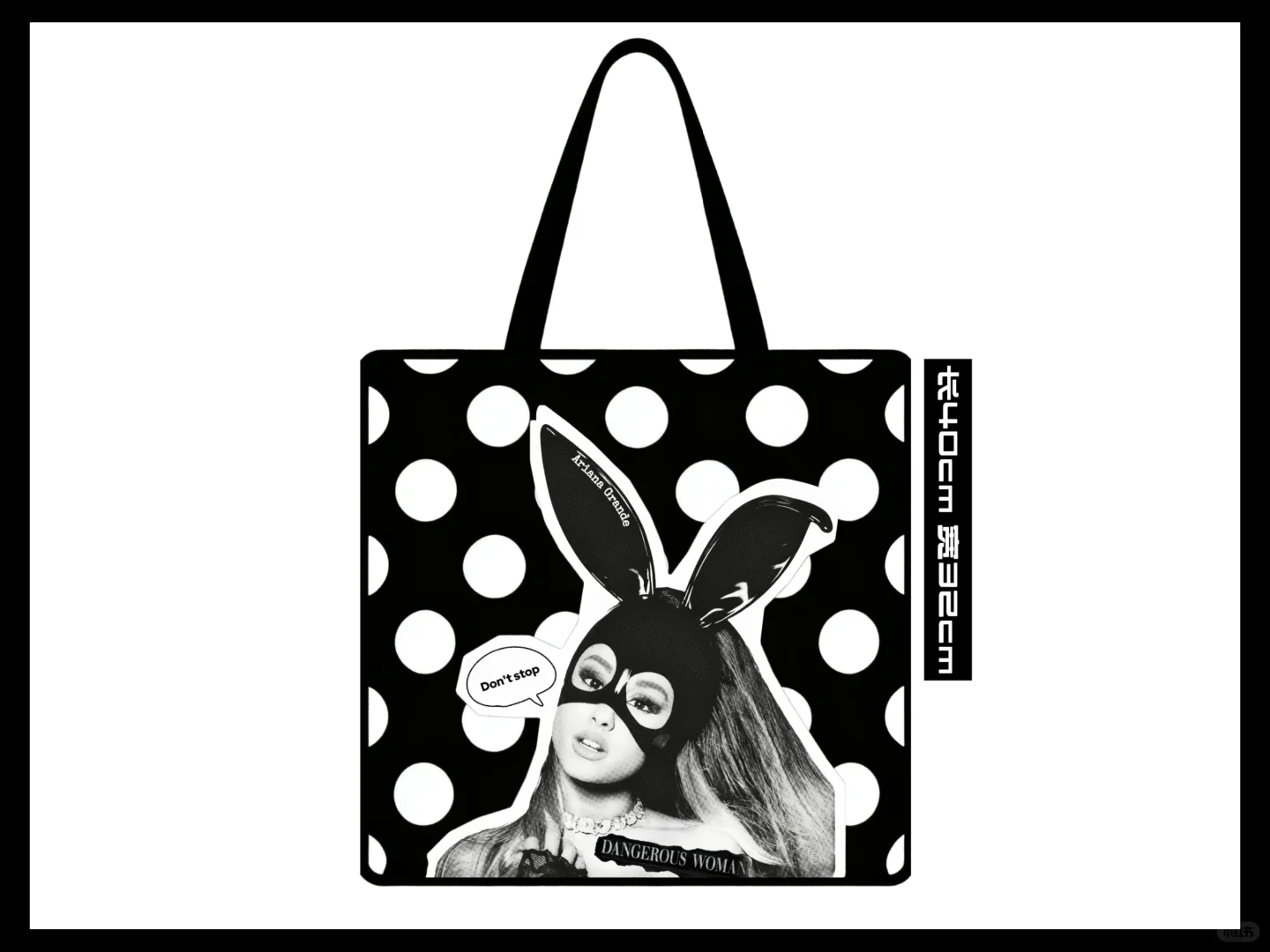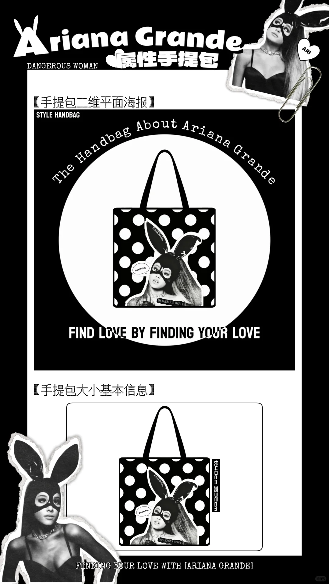 分享关于Ariana Grande的第三张录音室专辑《危险尤物(DANGEROUS WOMAN)》的属性手提包 整体为黑白色调