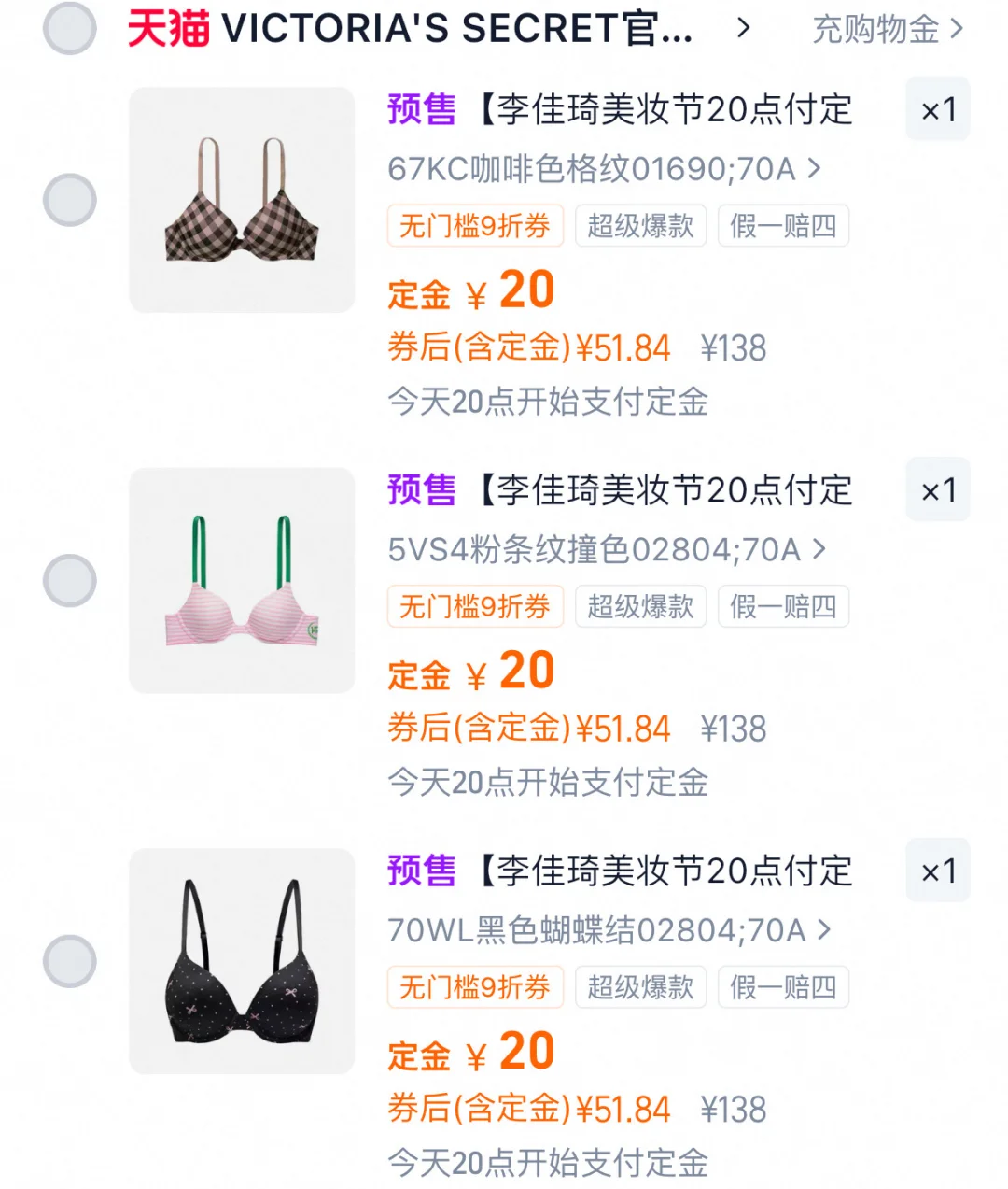目前看这三个 不知道哪个实物更好看 有没有买过的姐妹推荐一下型号和颜色的 尾款➕服饰天降⭕️,更划算#bra #内衣新风尚 #维多利亚的秘密 #维密pink心动杯