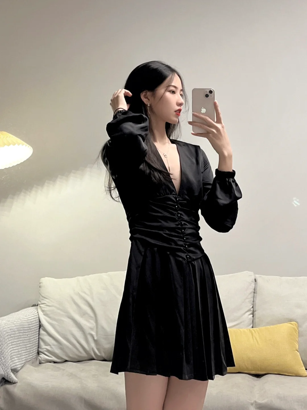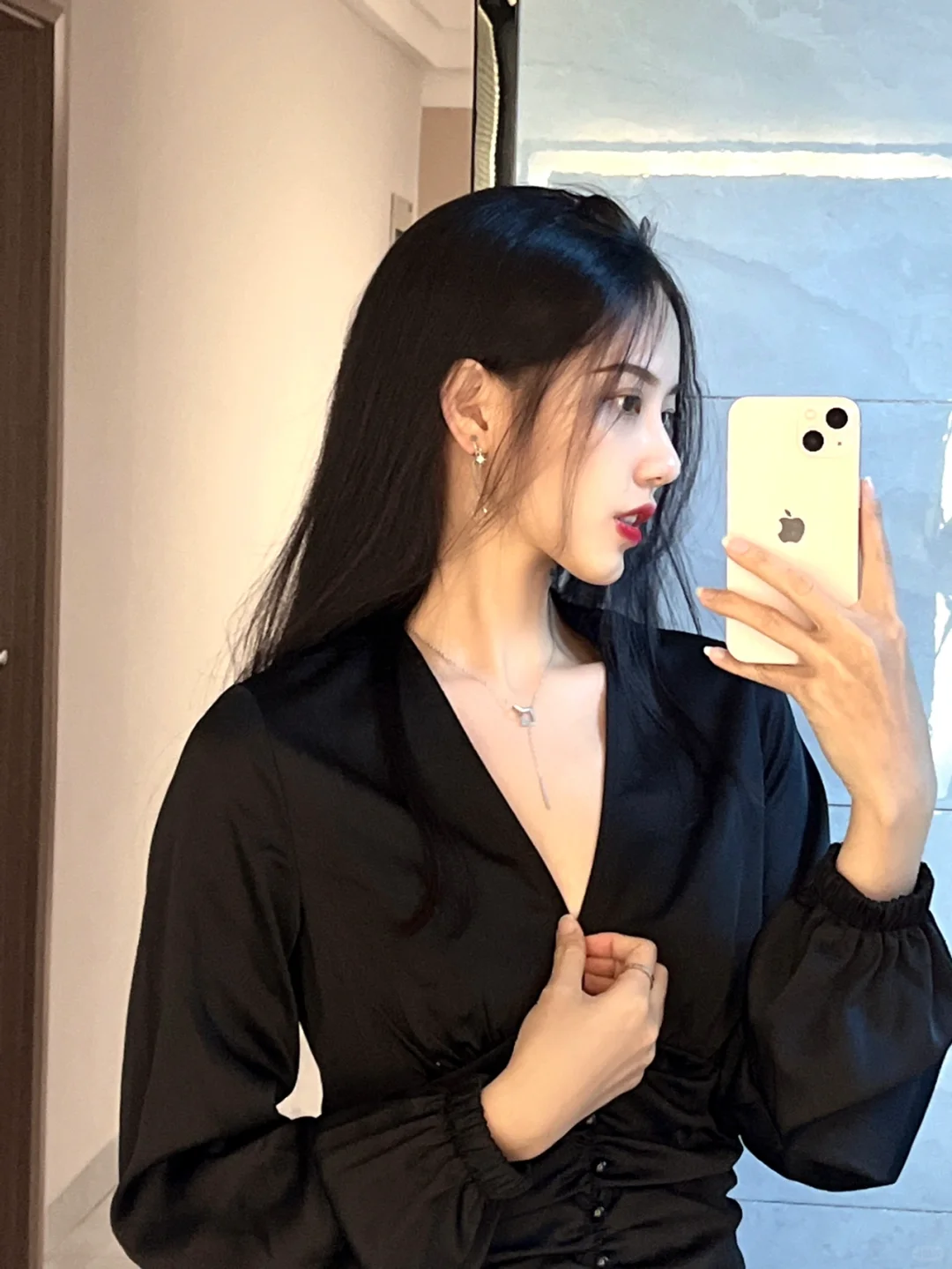 人手必备的深V小黑裙,腰部设计太显瘦了