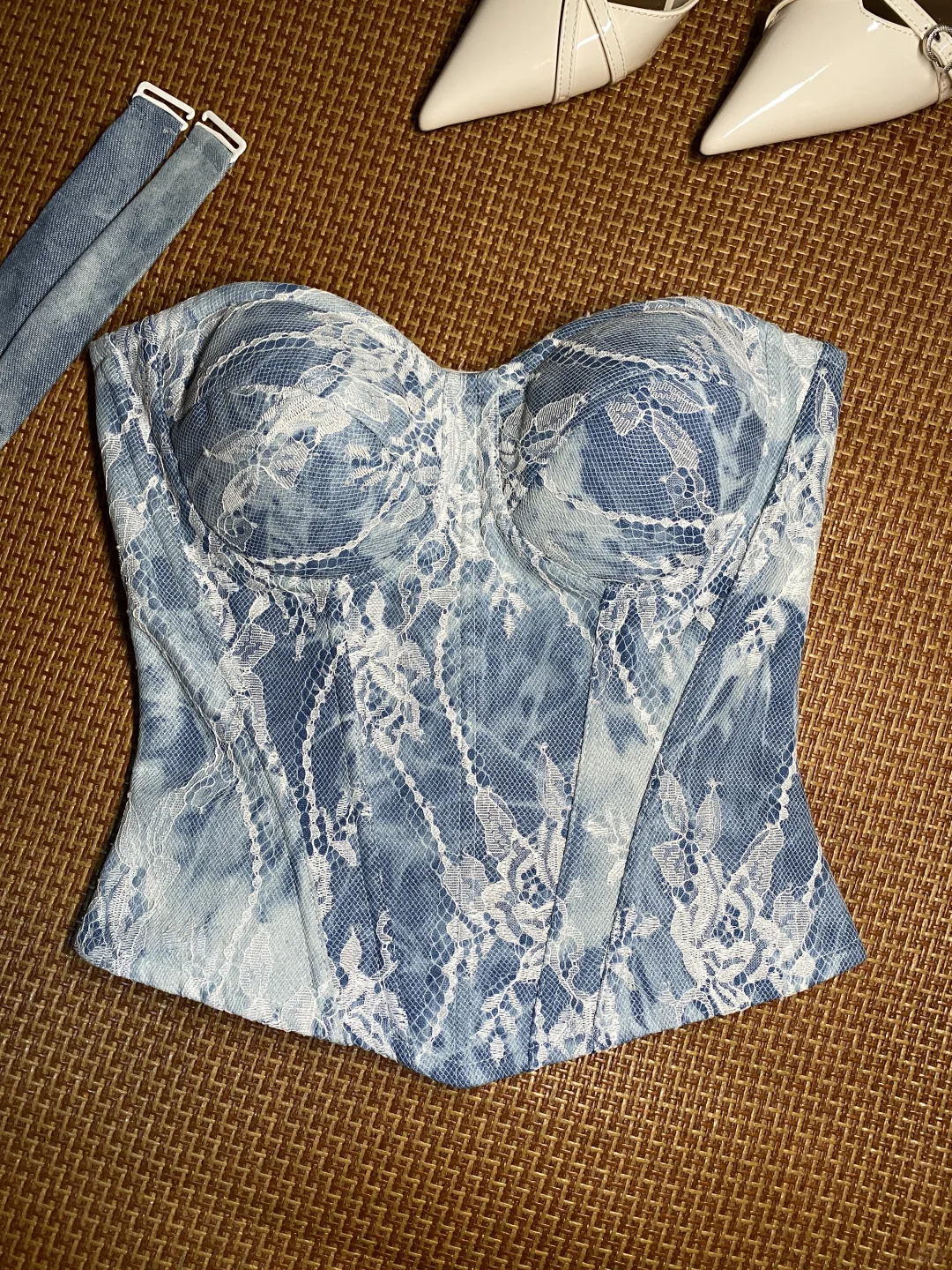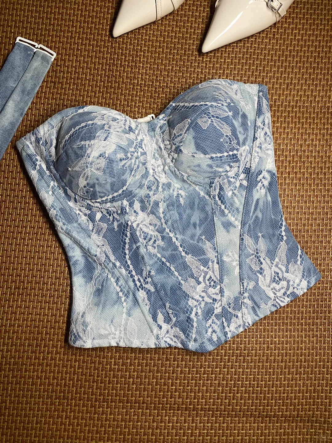 ins风蓝色蕾丝胸衣❗️美出圈了