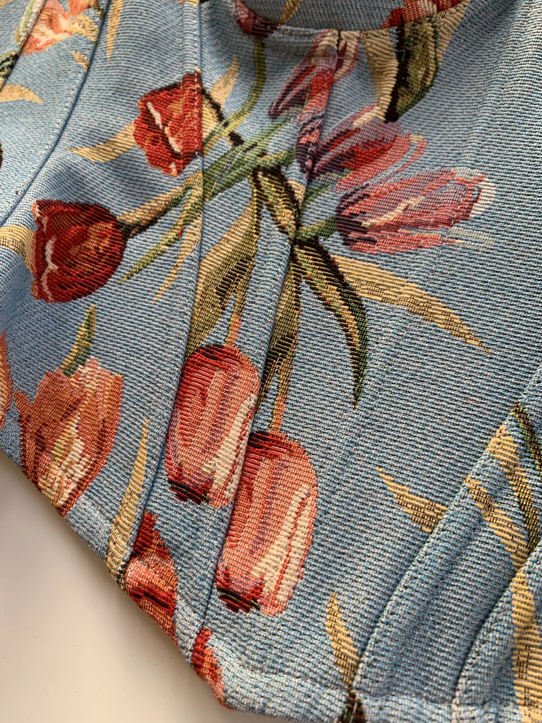 3️⃣内里我们是做了一层复合面料,鱼骨做了全包边处理,贴身穿完全不会磨皮肤,而且我们家的胸衣面料都是提前做了防缩水处理,大家收到货不管洗多少次他都是不会缩水的!郁金香做到的是彩印工艺,怎么刮都不会掉色,面料的细腻纹理和栩栩如生的印花图案完美融合,进一步提升了胸衣的质感。