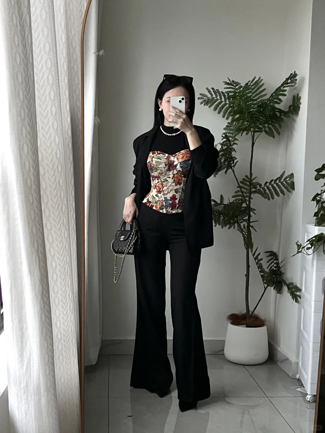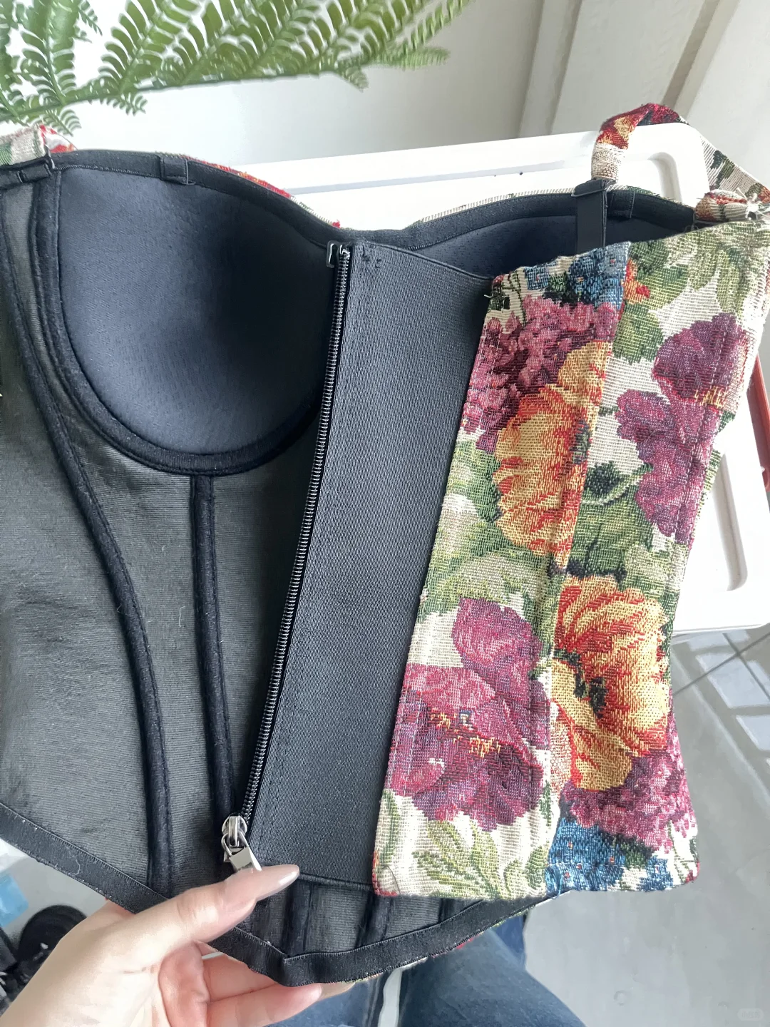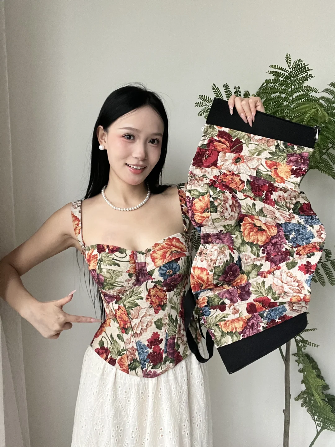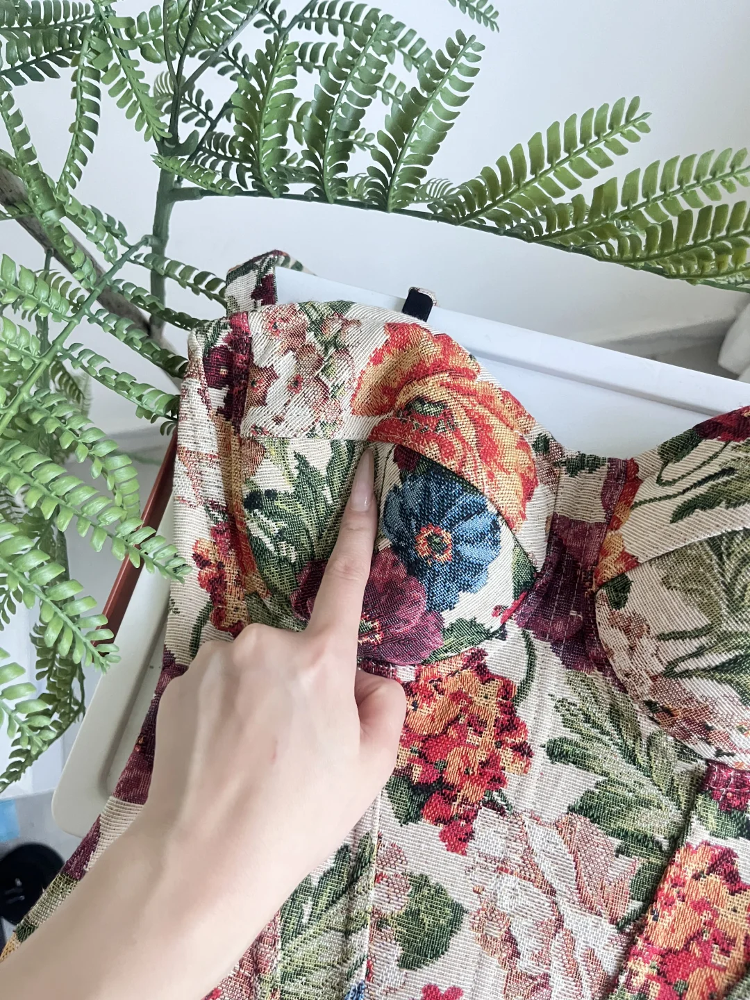 最近挖到的复古花卉胸衣,本来以为只能单穿,没想到叠穿在西装里,好好看✨
