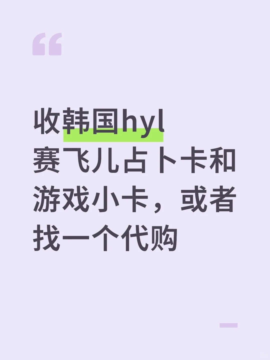 收韩国hyl赛飞儿占卜卡和游戏小卡,或者找一个代购