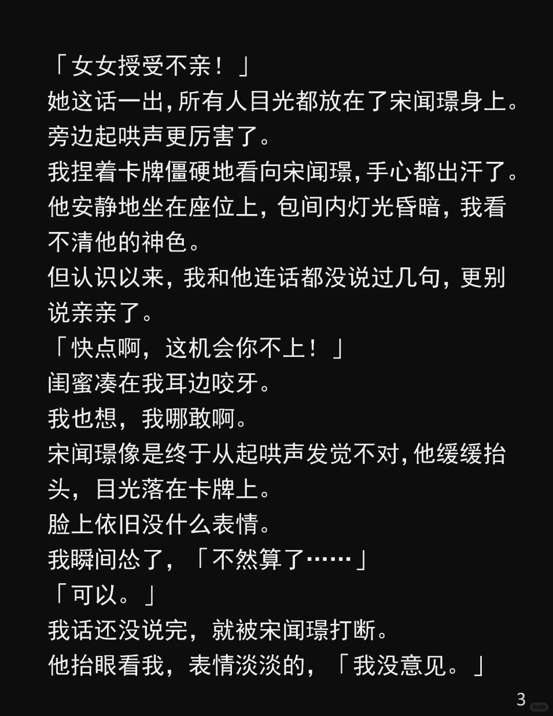 我以为幻听,结果他后面故意连输游戏,又抽中 “和身边人热吻”;说闻不了烟味换去我旁边;绕大远来我宿舍食堂吃饭;找我教钢琴(后来才知道他弹琴超牛);下雨特意撑伞等我,伞全歪我这边,心里却碎碎念 “她穿太少冷不冷”。