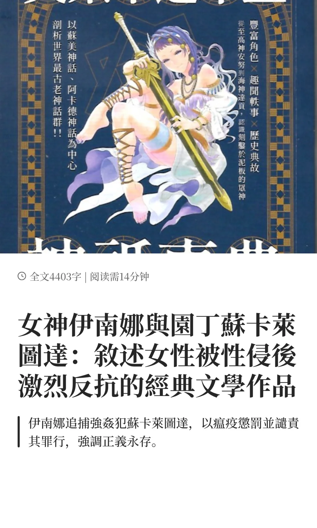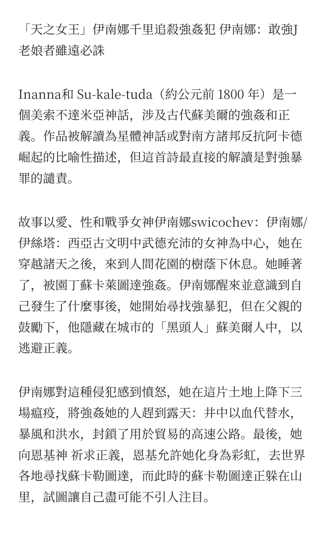 「天之女王」伊南娜千里追殺強姦犯 伊南娜:敢強姦老娘者雖遠必誅