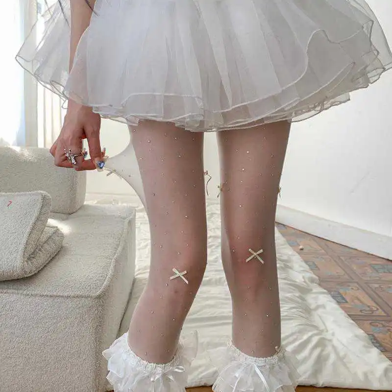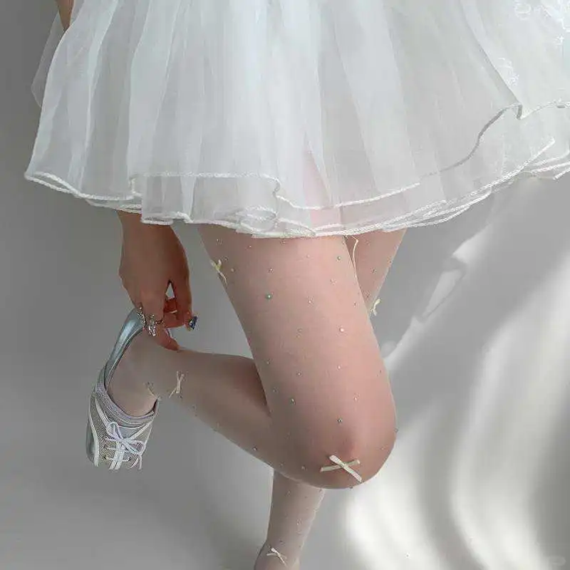 这款白丝采用了超薄的材质,透气性超好,夏天穿着完全不闷热。而且它的设计超级独特,带有精致的蝴蝶结和镶钻装饰,穿上它仿佛置身于浪漫的芭蕾舞台,每一个动作都散发着优雅的气质。👗