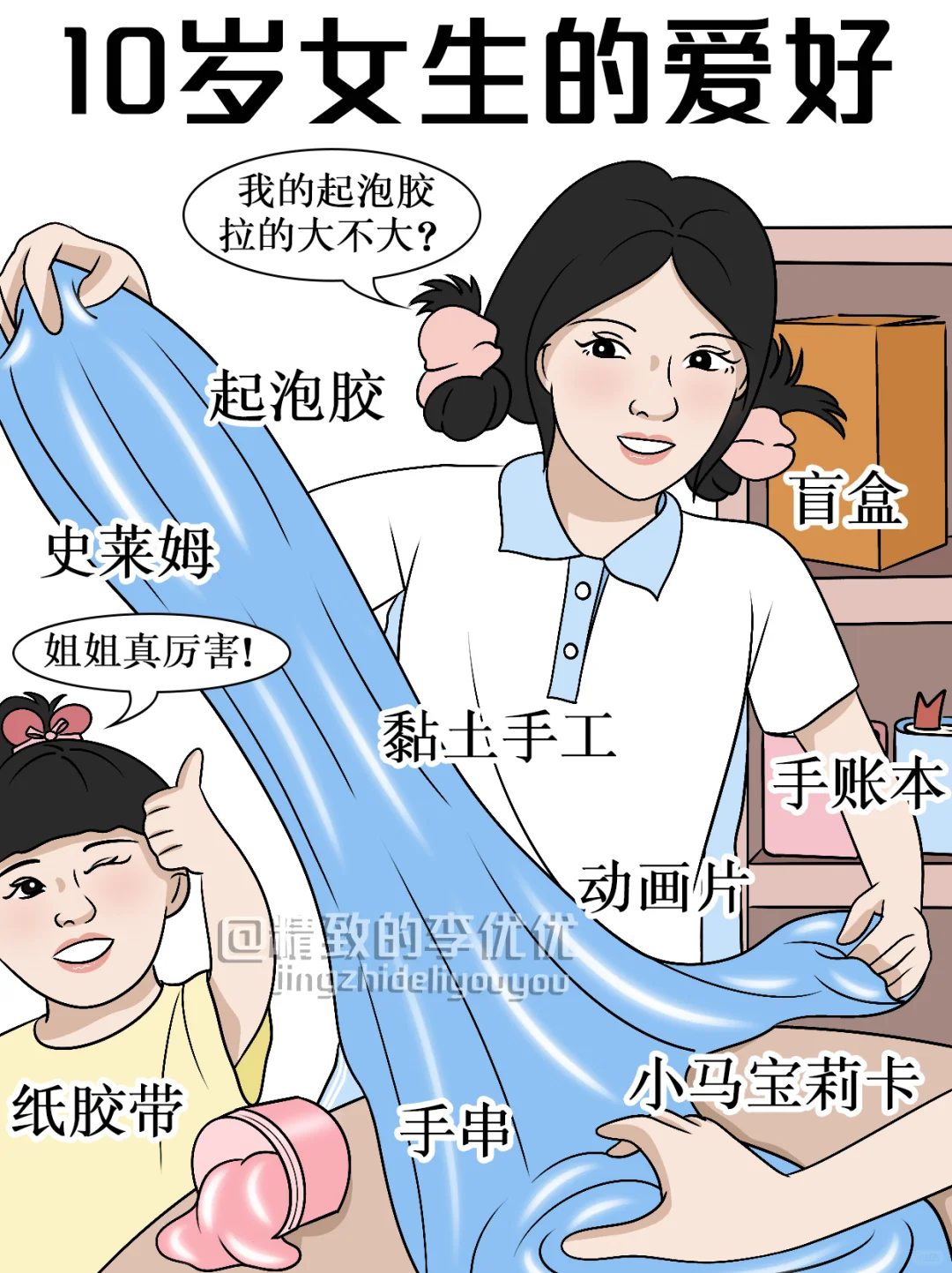 10岁的女生喜欢玩起泡胶、史莱姆、手账本等等;