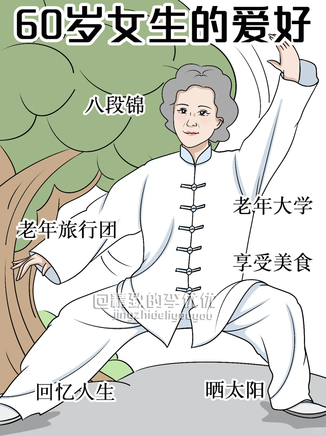 60岁的女生喜欢八段锦、上老年大学、回忆人生;