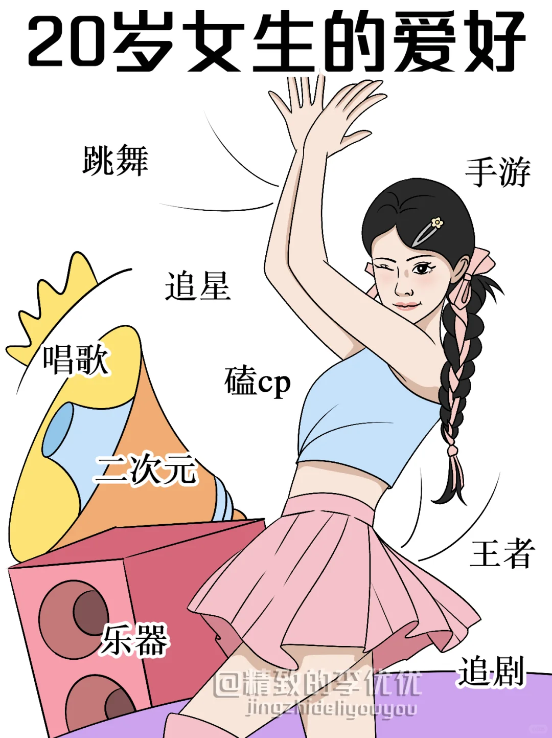 20岁的女生喜欢跳舞、磕cp、追星等等;