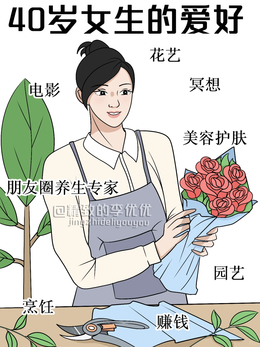 40岁的女生喜欢花艺、电影、是朋友圈养生专家;
