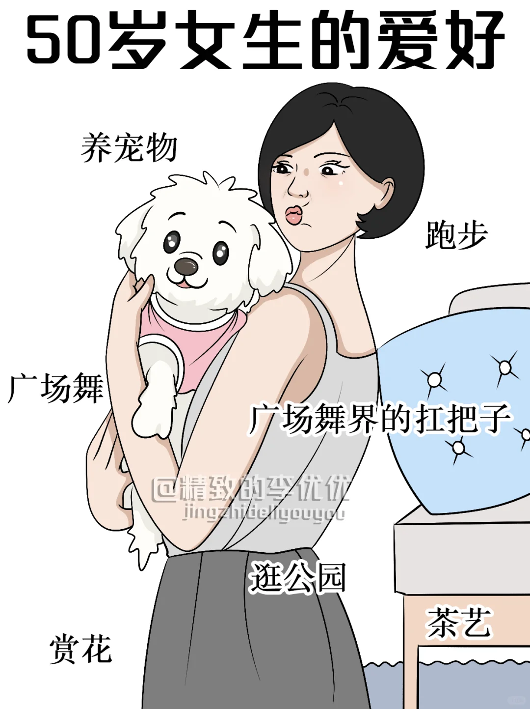 50岁的女生喜欢养宠物、广场舞界扛把子、逛公园;